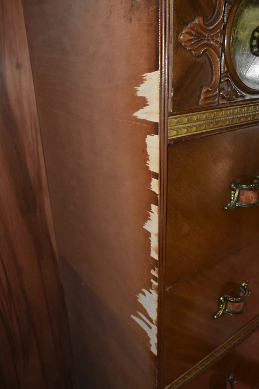 Noted issues:* Veneer loss and finish wear (visible in photos)