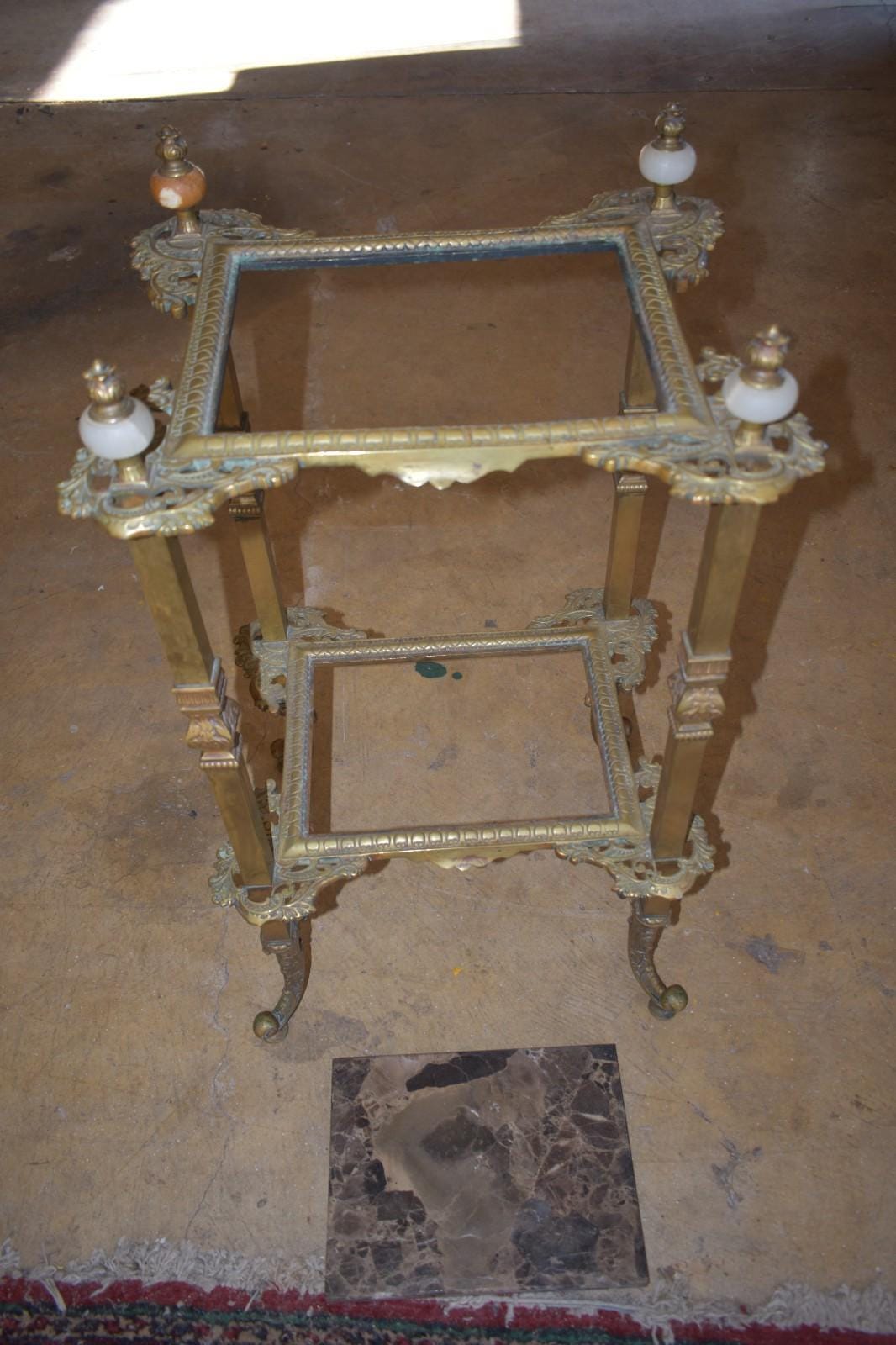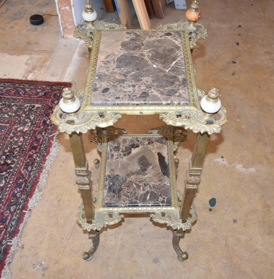 Be the first to review “Antique French Louis XVI Style Gilt Brass Marble Top Étagère Side Accent Table”