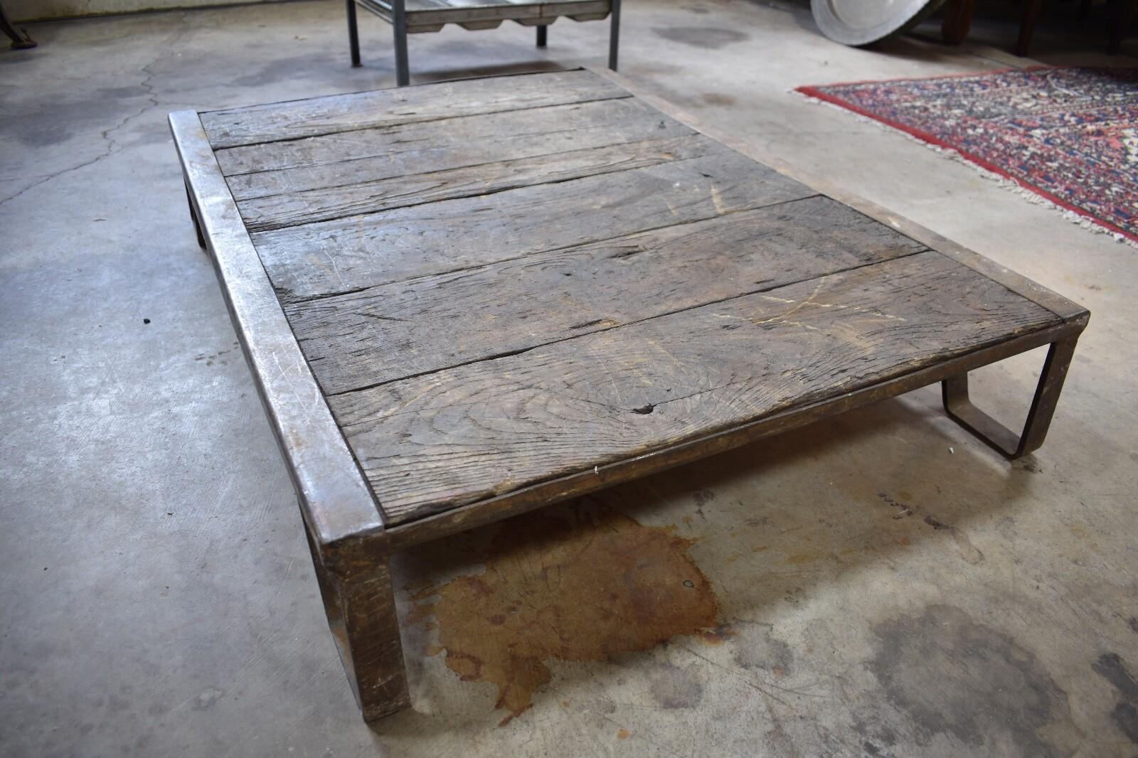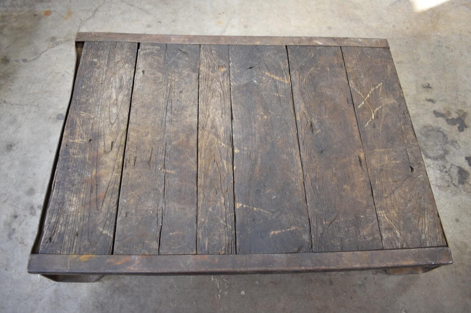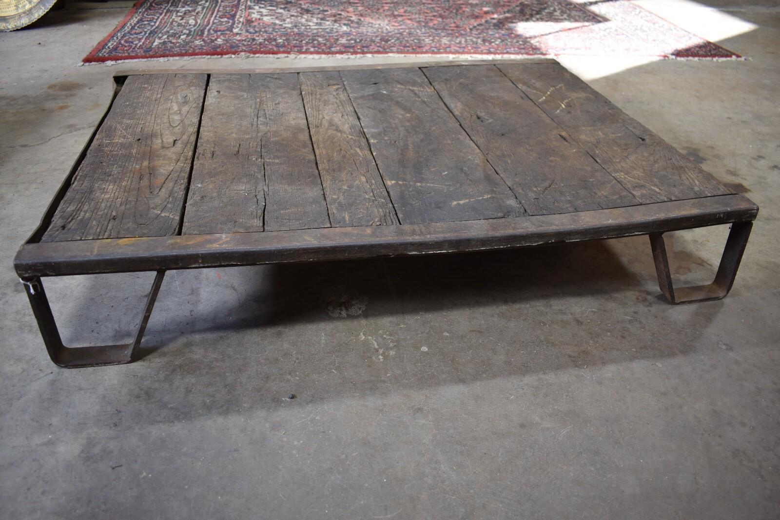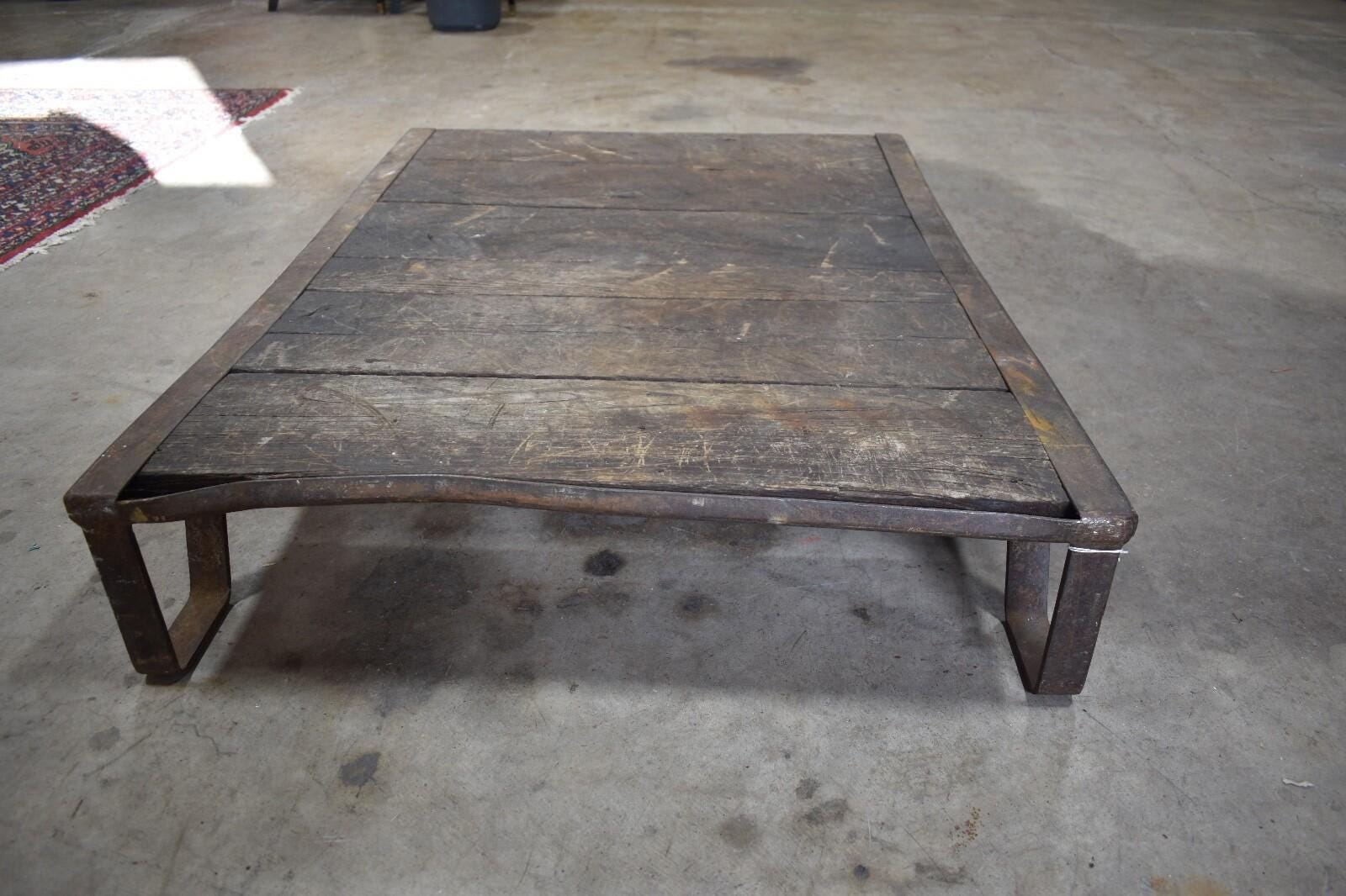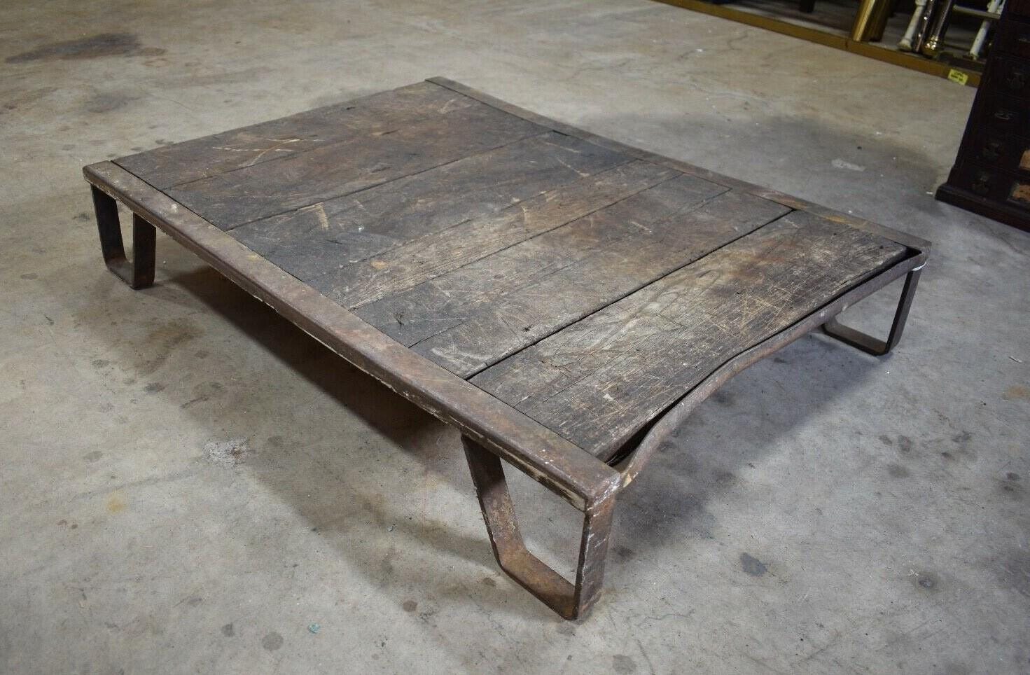Be the first to review “Antique Iron and Oak Slat Train Skid, Industrial Table”