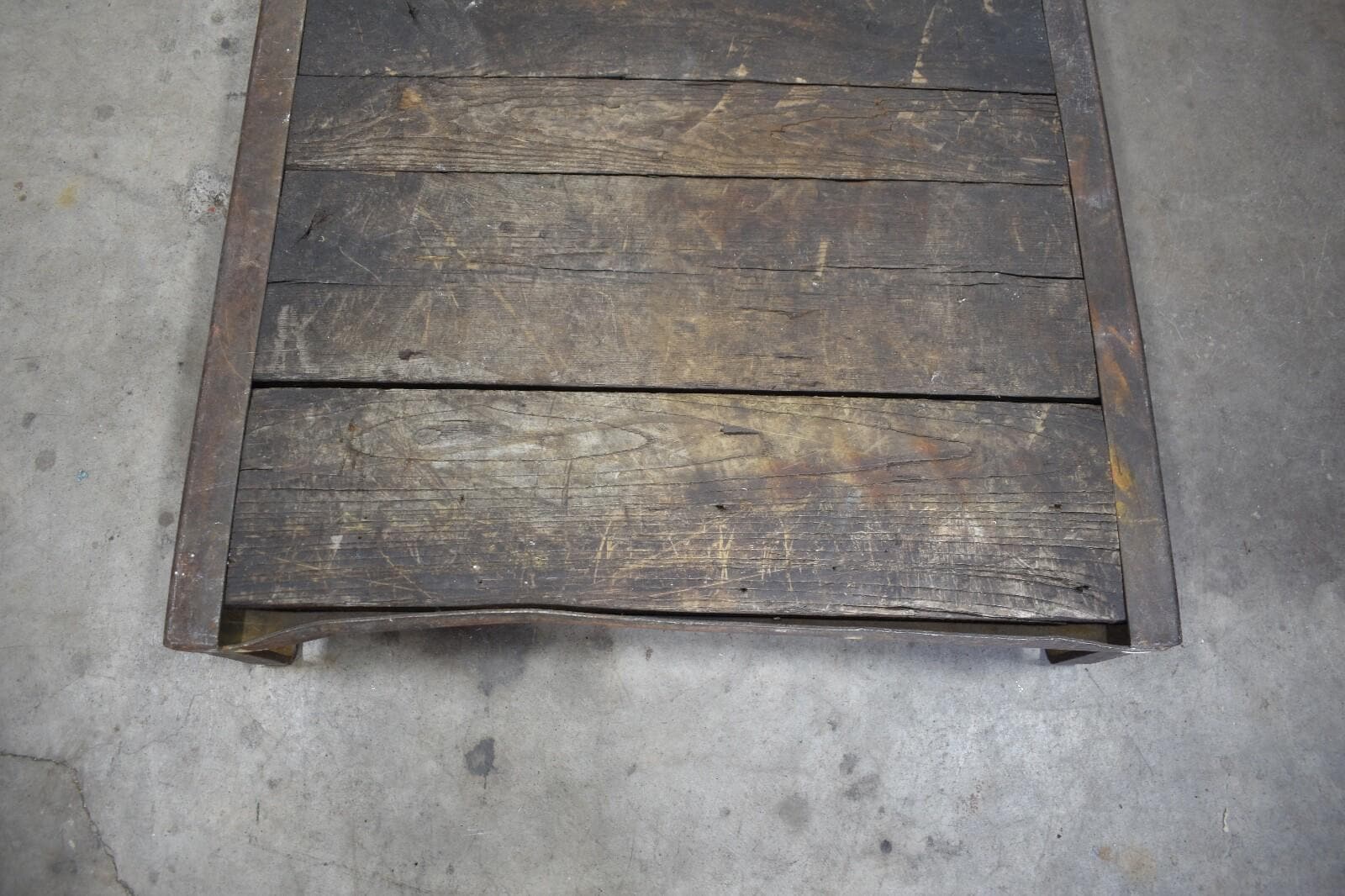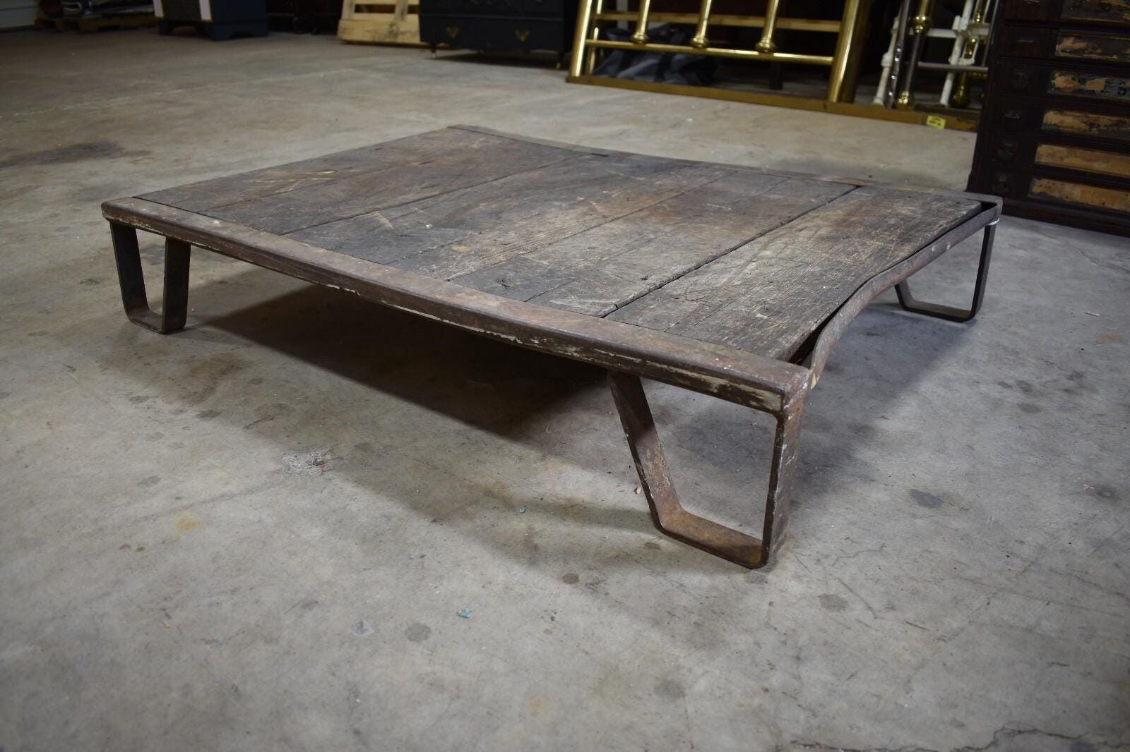 Antique Iron Train Skid with Oak Slats