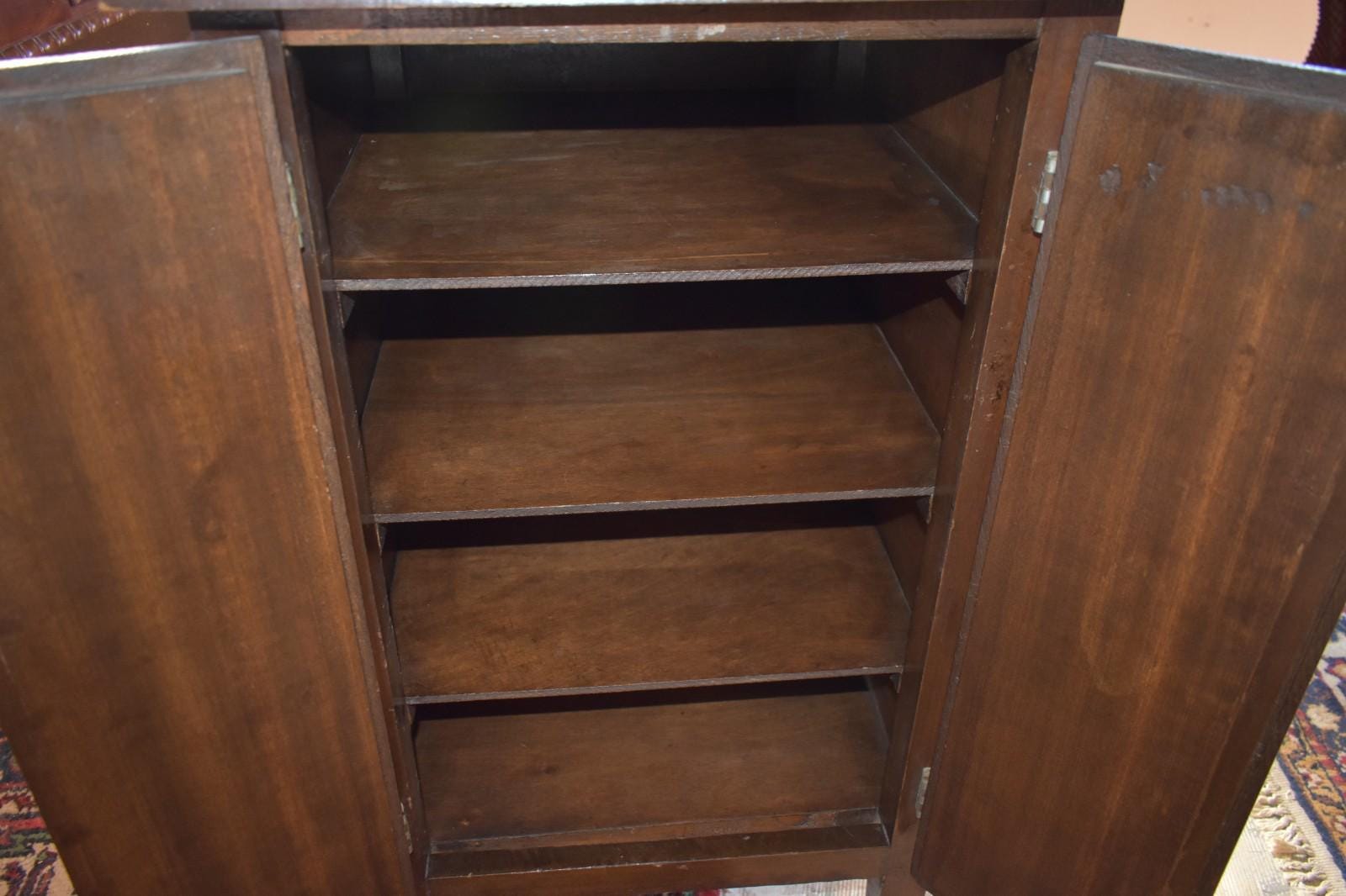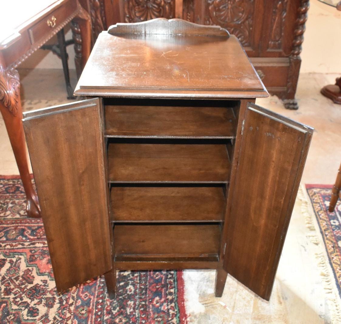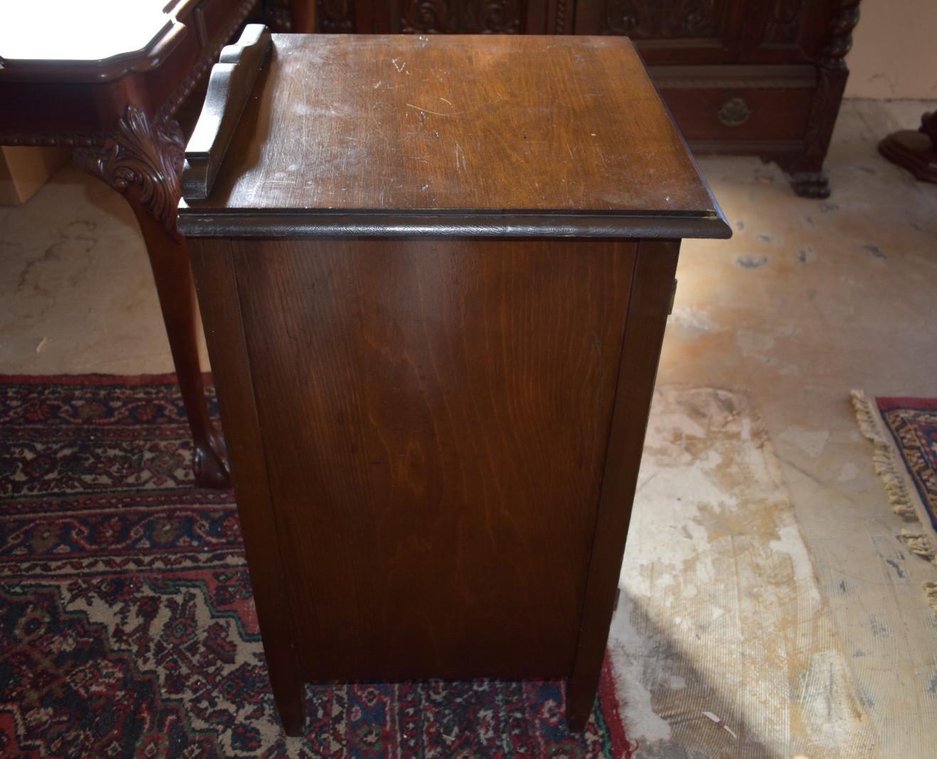 This antique music cabinet dates to the early 20th century and was specifically designed for the storage and organization of sheet music and music folios, a common household furniture form during the piano and parlor-music era.