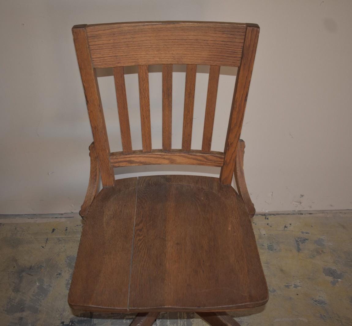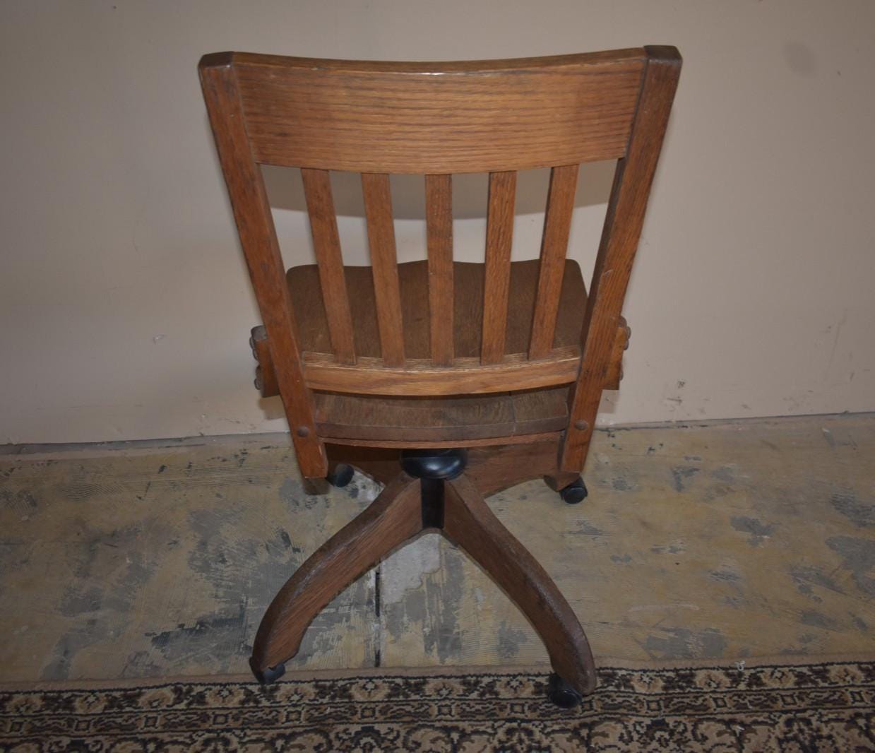 Antique Oak Office Chair Banker Swivel Rolling Wood Desk Chair