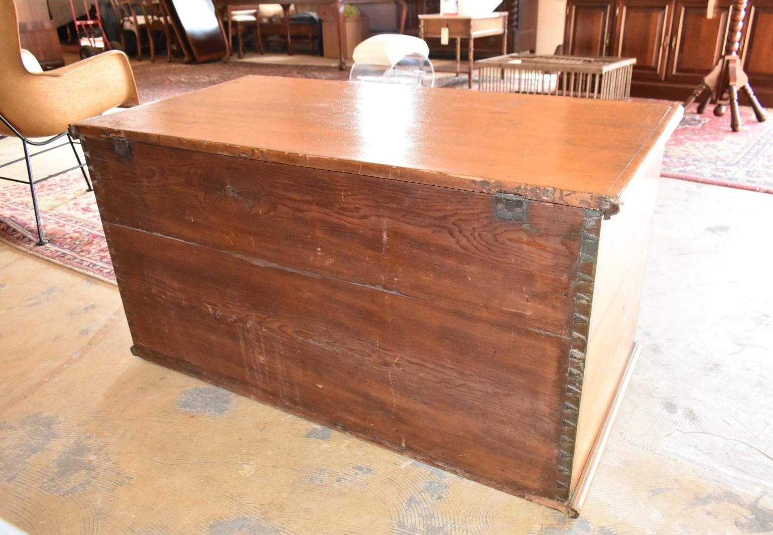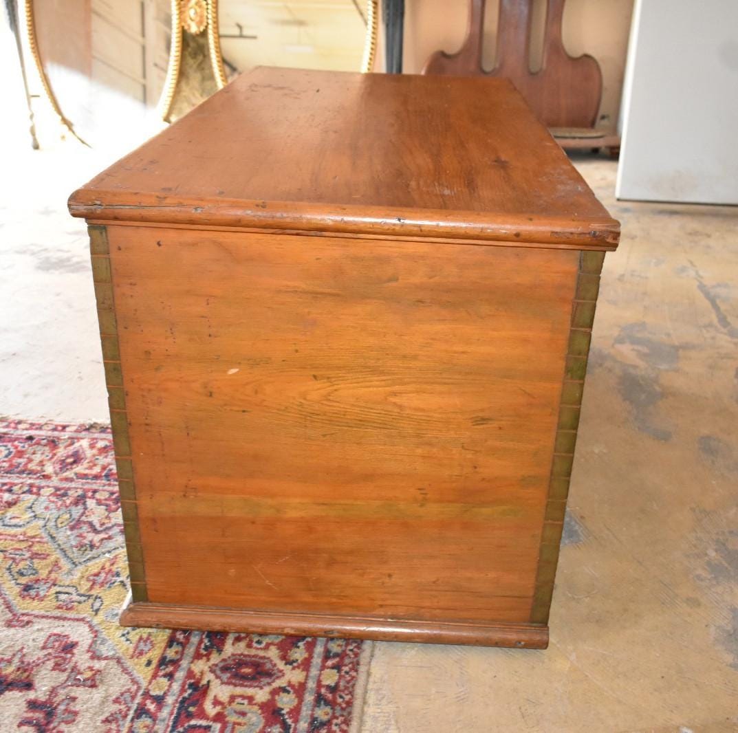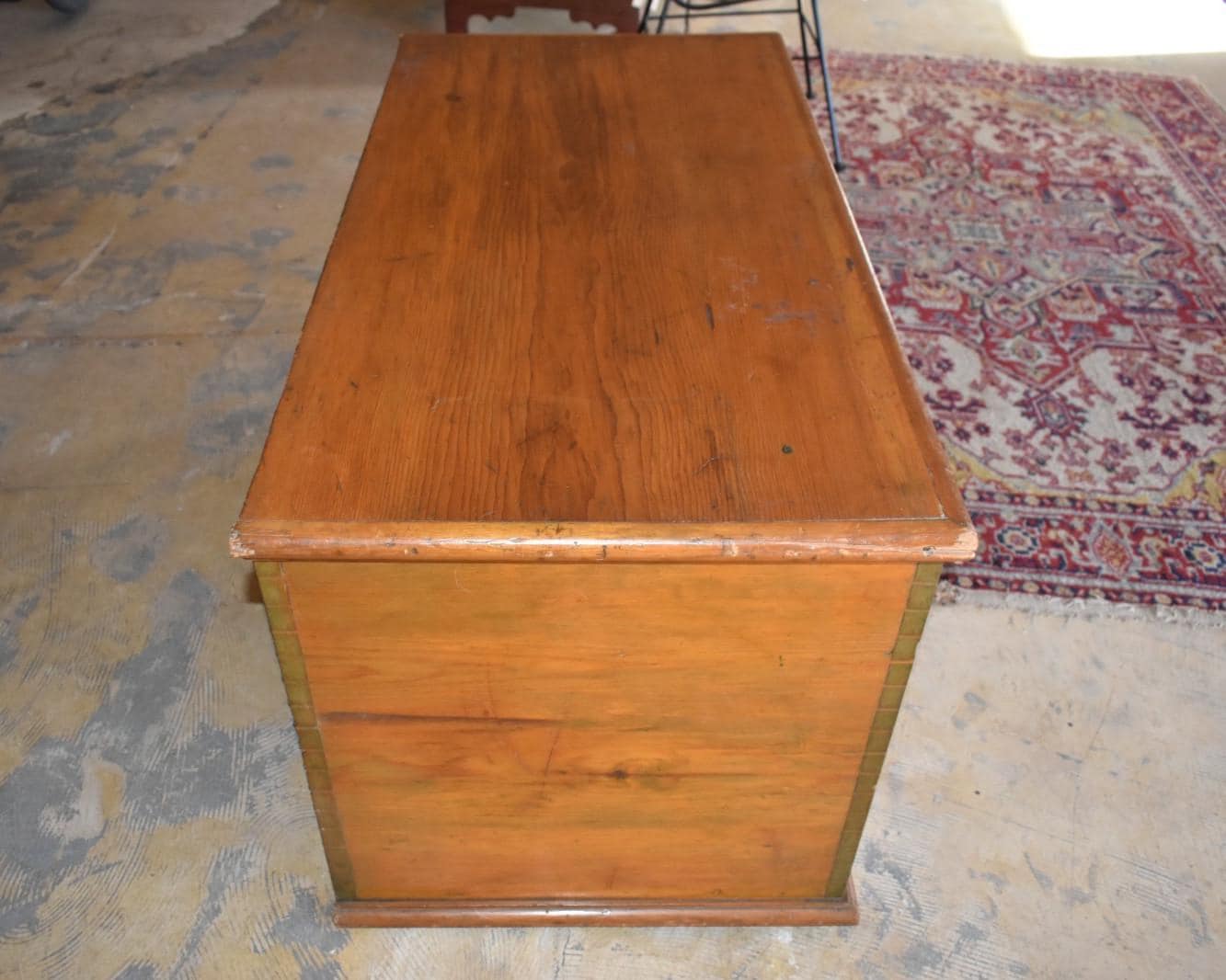 This piece has a simple, primitive farmhouse form, with a warm aged finish and visible wear consistent with long use. Constructed for function rather than decoration, making it well-suited today as a blanket chest, toy box, or rustic storage piece.