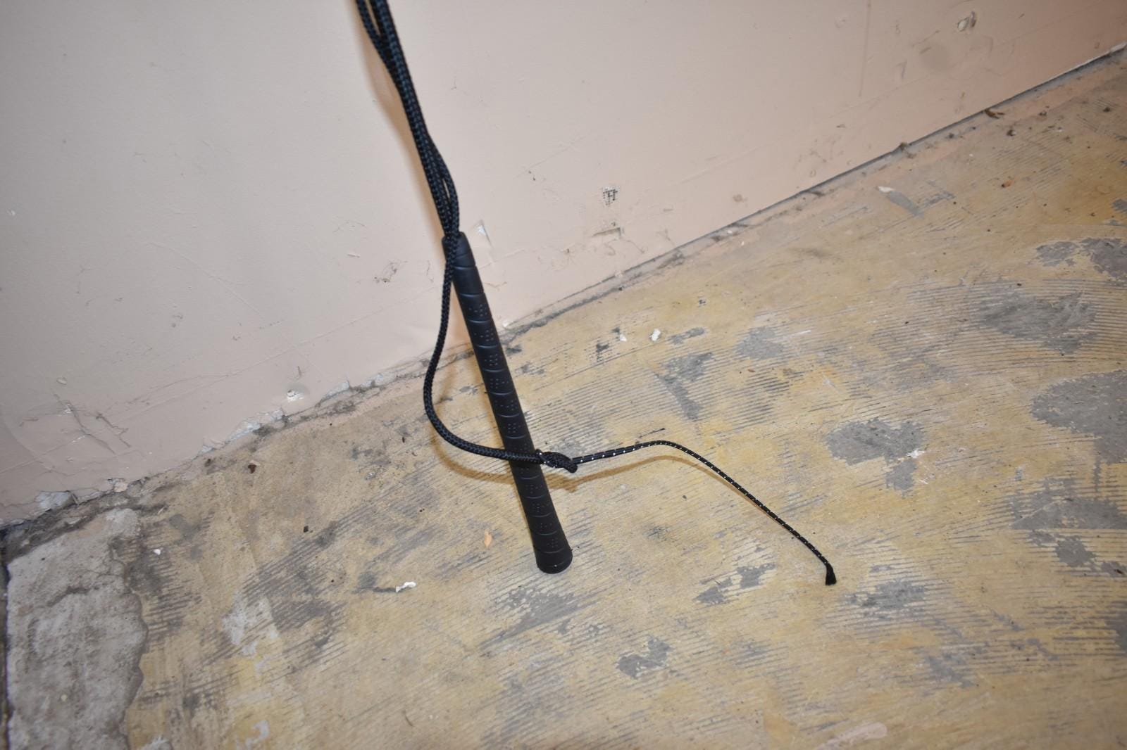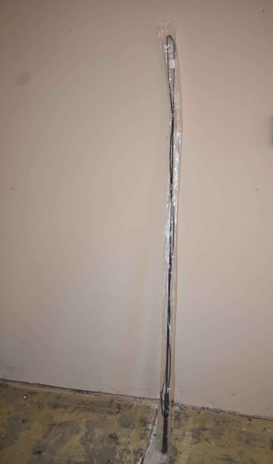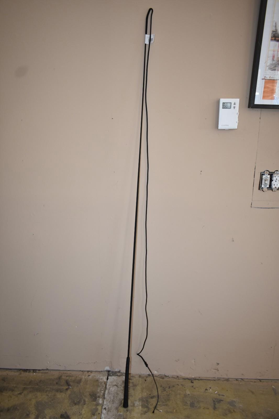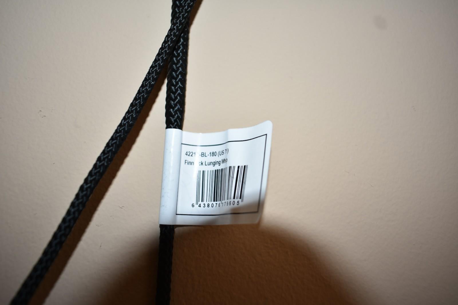 This listing is for a Finntack lunging whip, measuring approximately 72.5 inches in length. The whip has never been used. The original manufacturer’s tag remains attached, confirming it as unused.