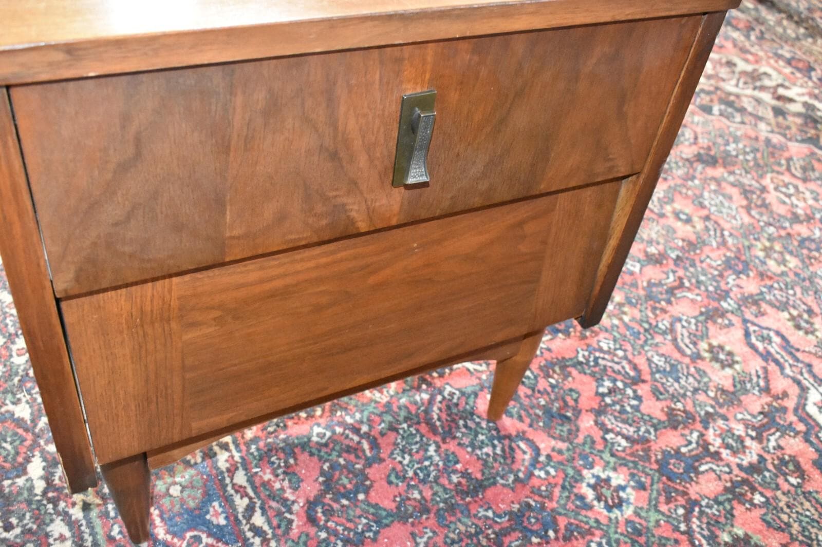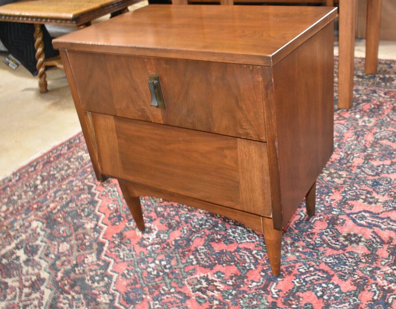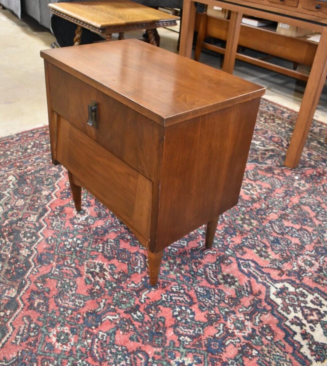 Walnut 2 drawer nightstand on 4 legs.