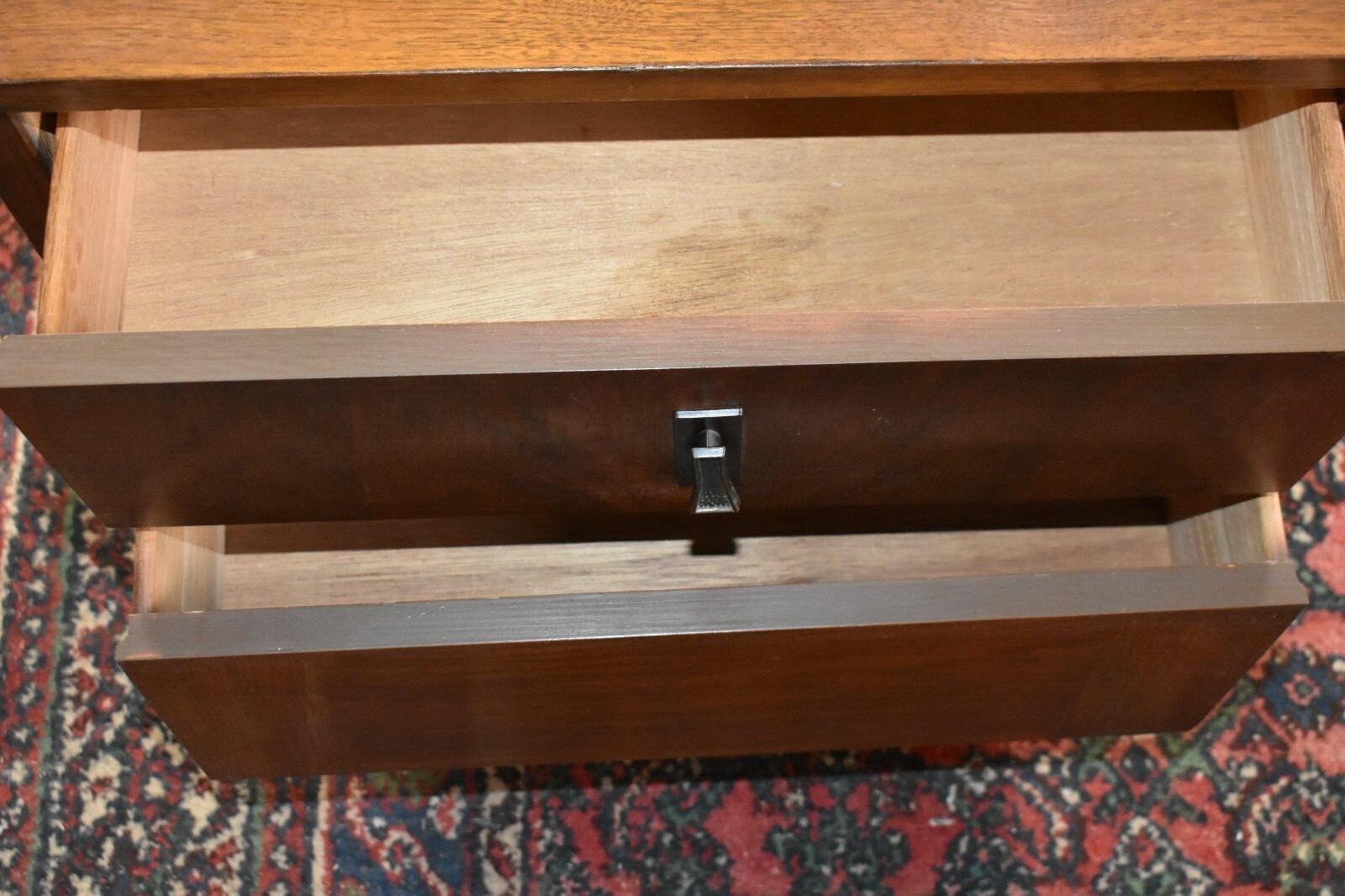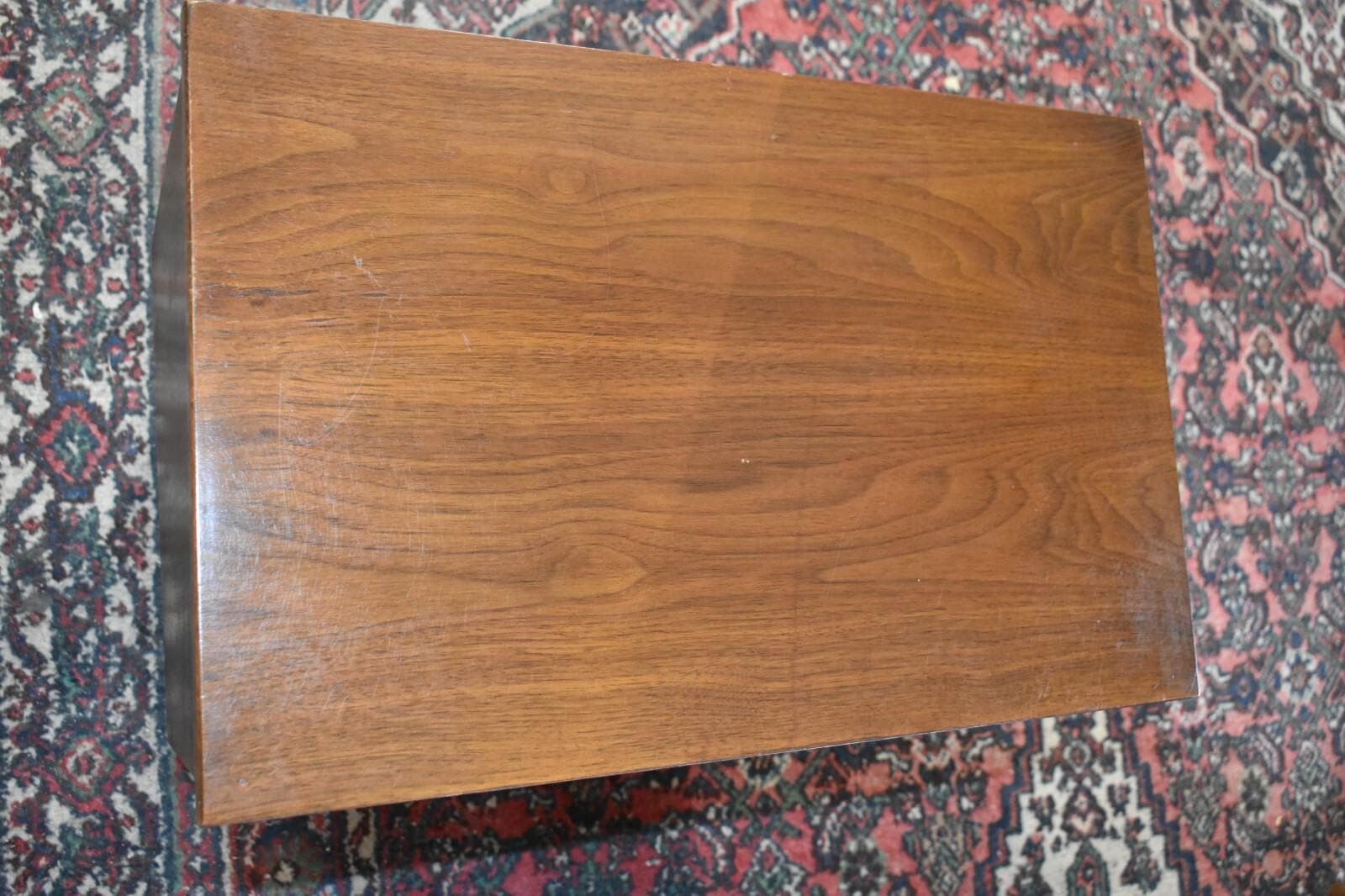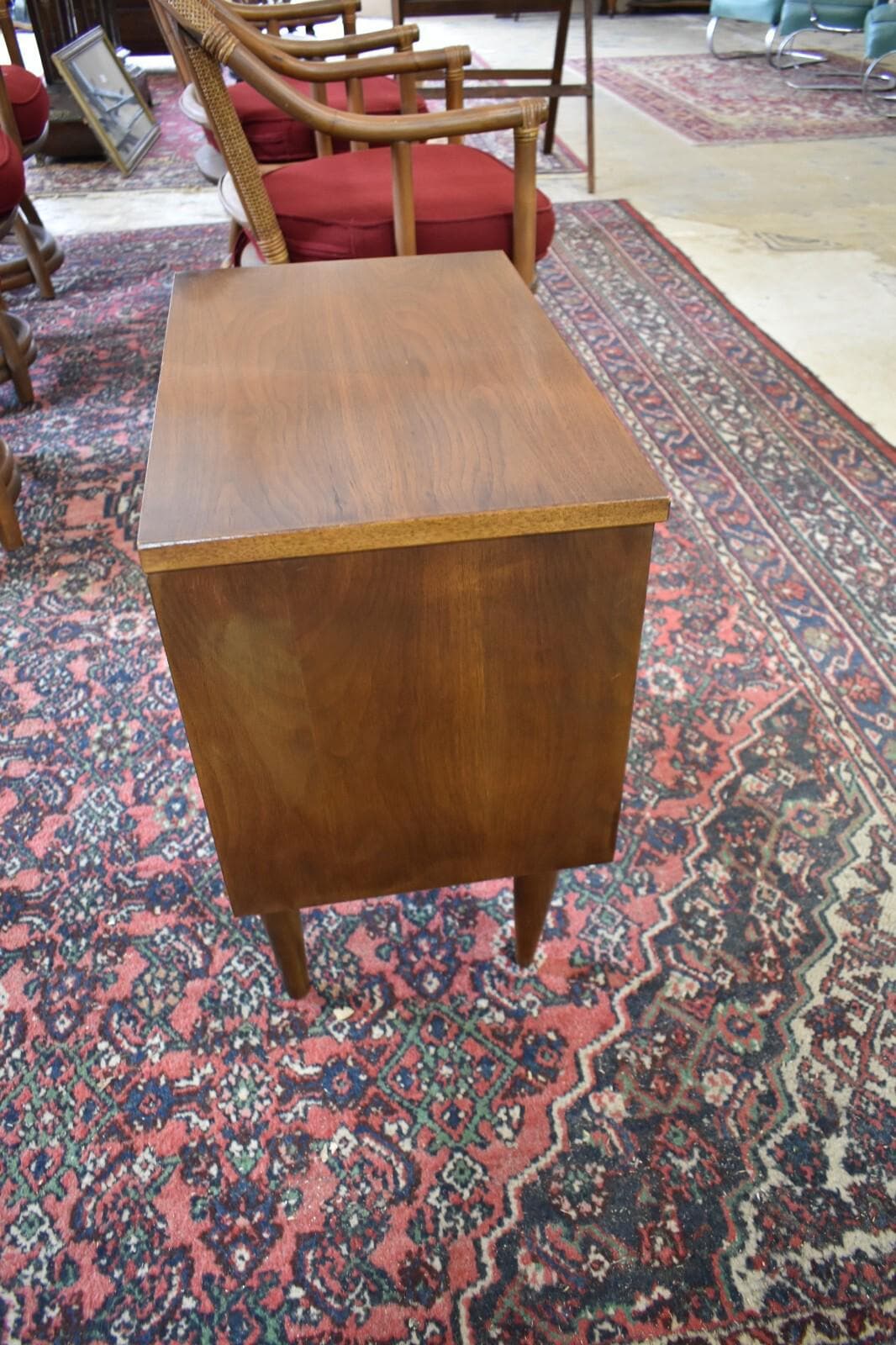 Walnut 2 drawer nightstand on 4 legs.