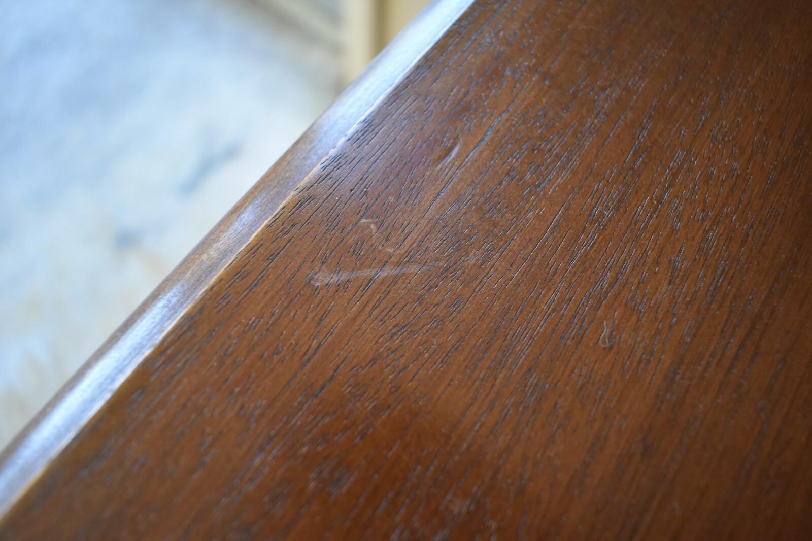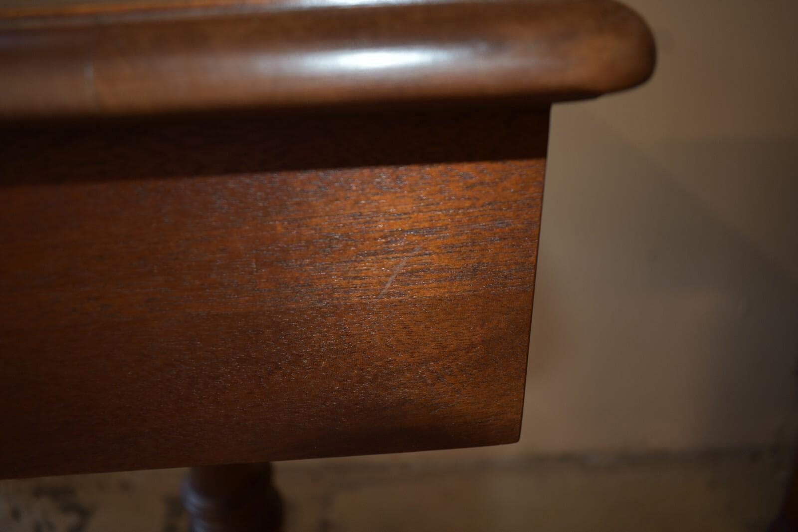 Condition: Overall good condition. There are some marks, etc appropriate for age/use. Solid Sturdy table.
