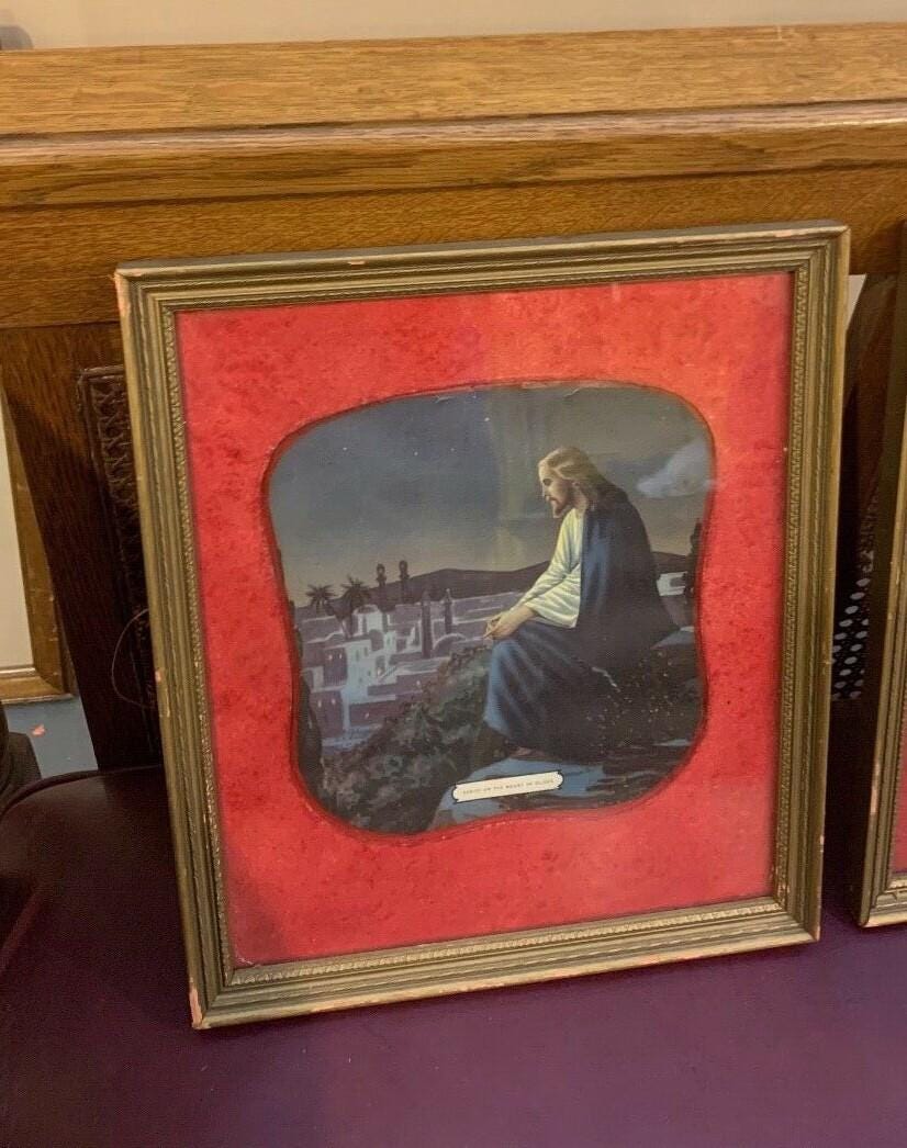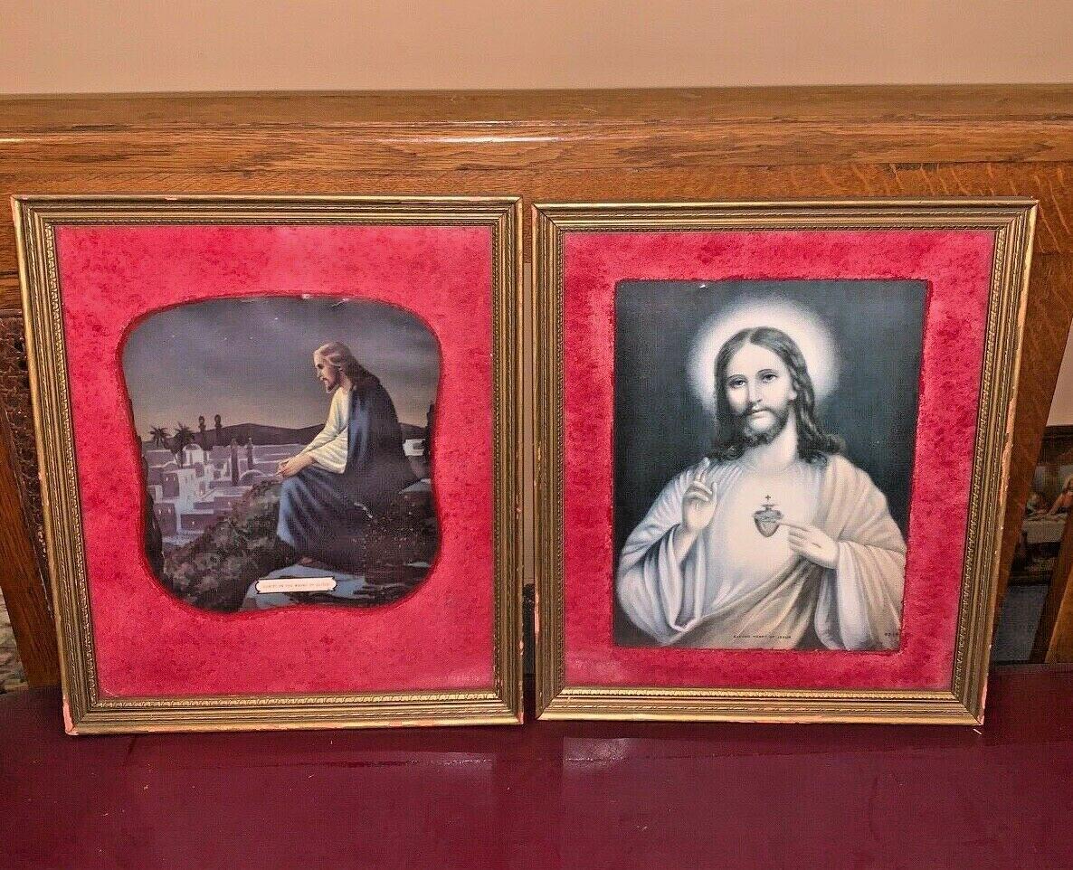 Set of Two Vintage Framed Prints of Jesus