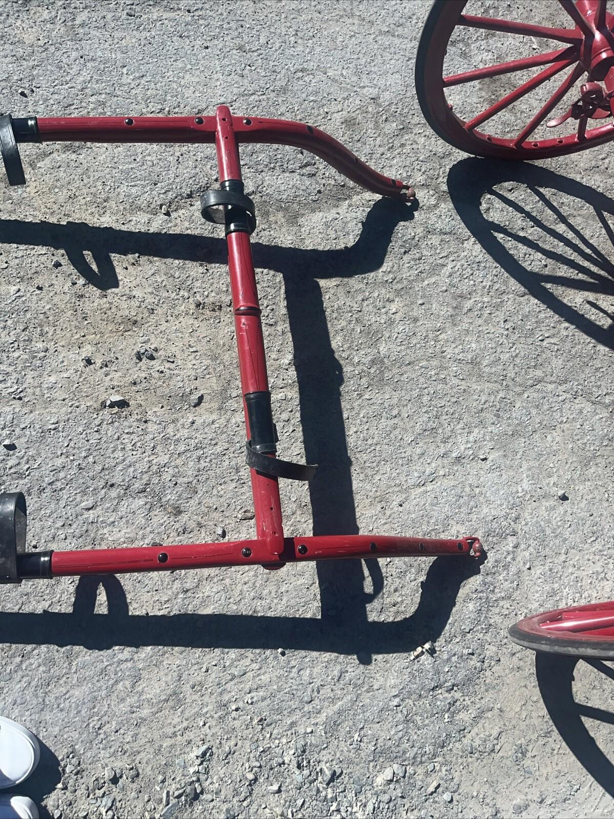 Beautiful Restored Pony Slat sided back to back cut under trap wagon shafts.