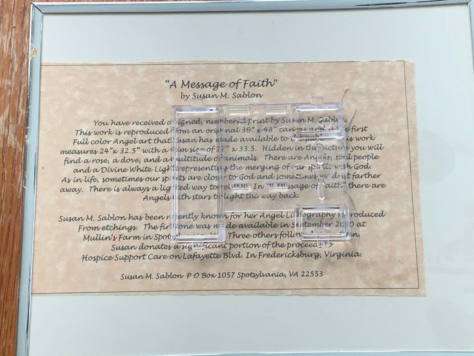 Signed numbered framed Print by Susan M. Sablon 2003, A Message of Faith