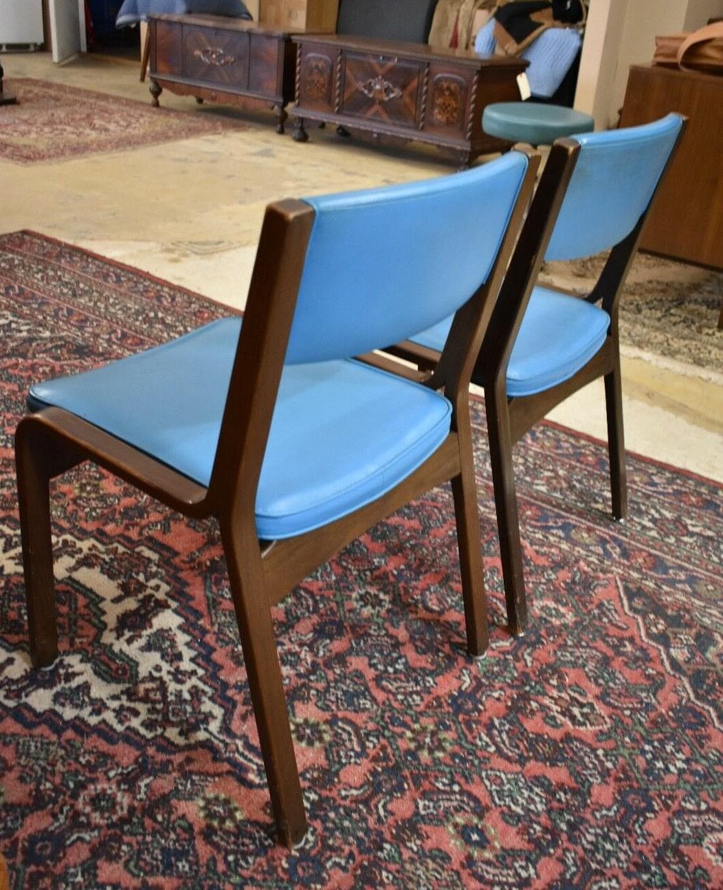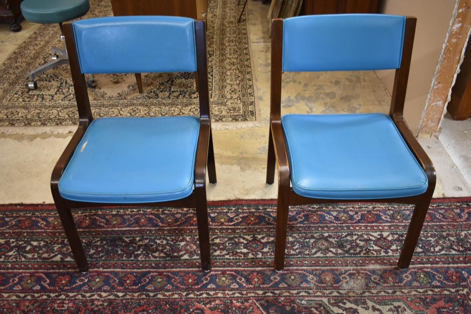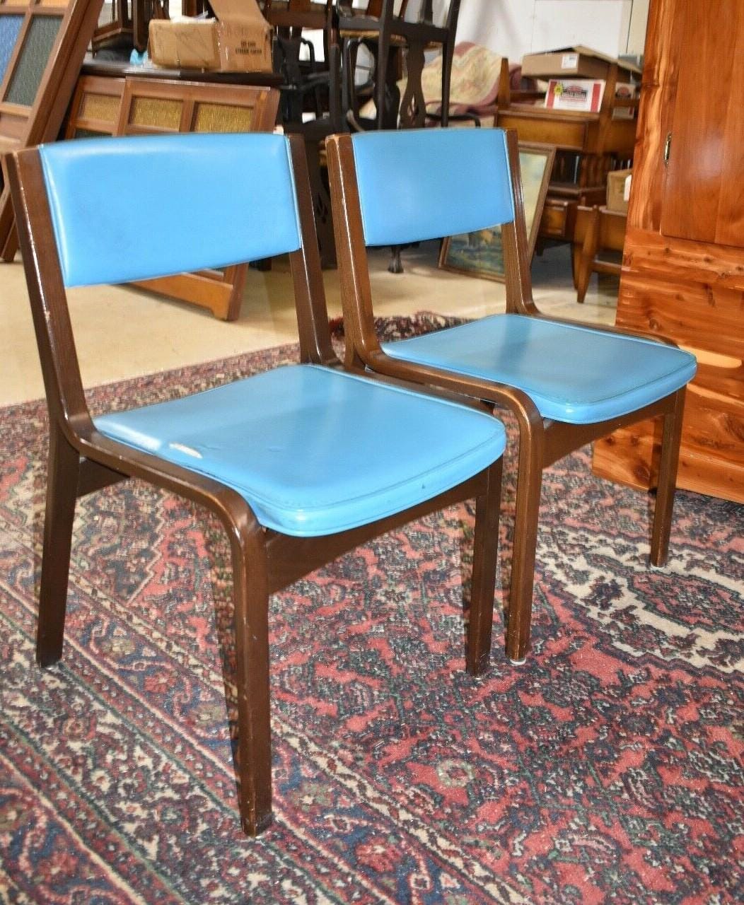 Mid-Century Blue Upholstered Side Chairs, a Pair