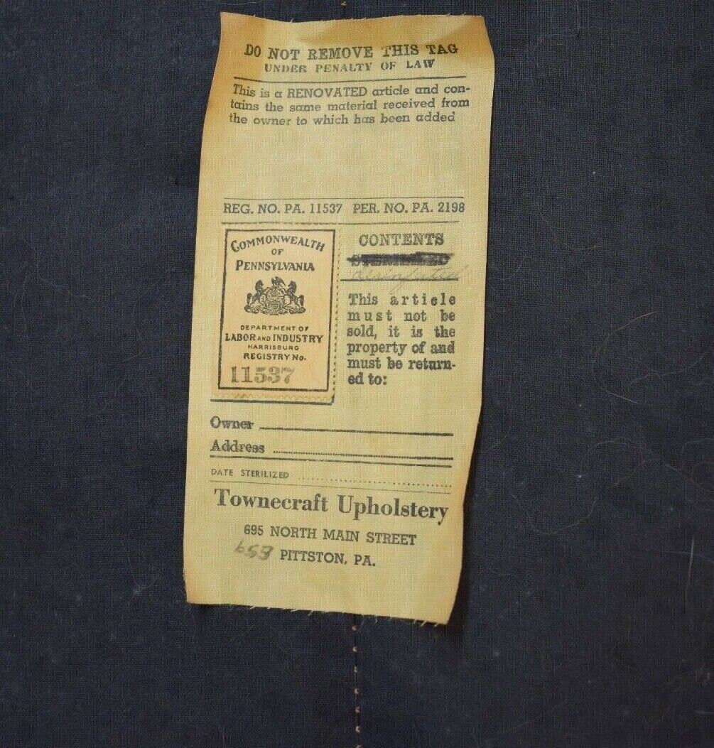 The upholstery is not original to the chair but is appropriate.
