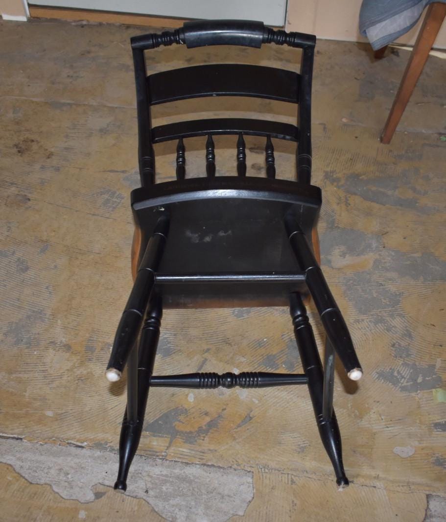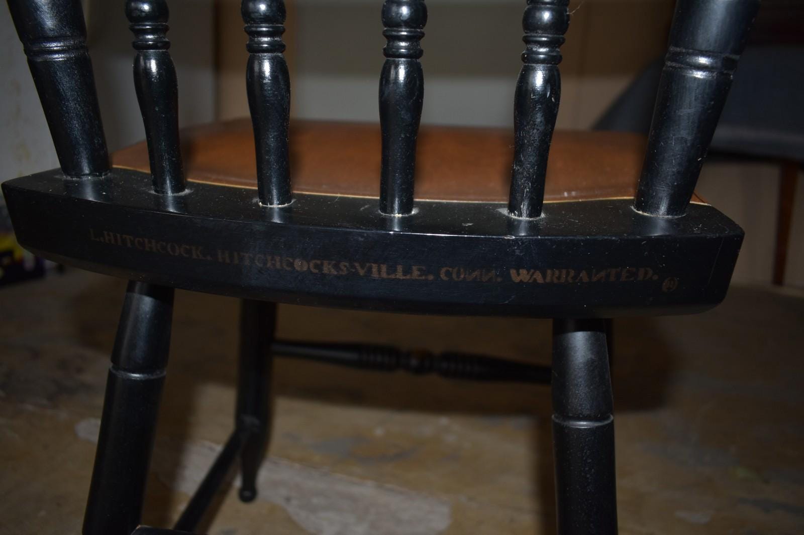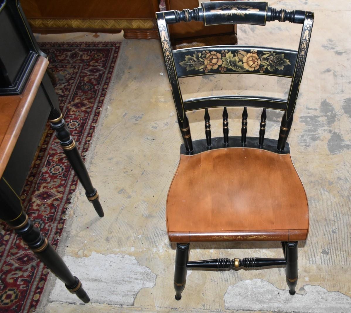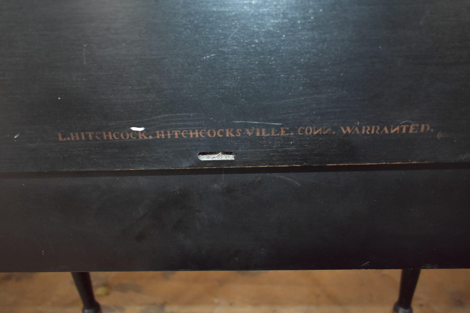 Charming stenciled black and maple writing desk with matching Hitchcock chair, retaining original back stamp reading:
