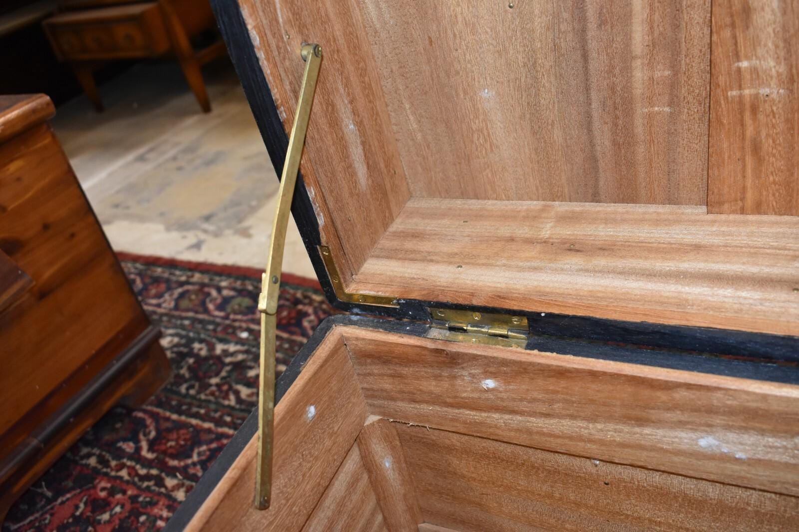 Lots of exterior decoration with brass and in good solid, sturdy condition.