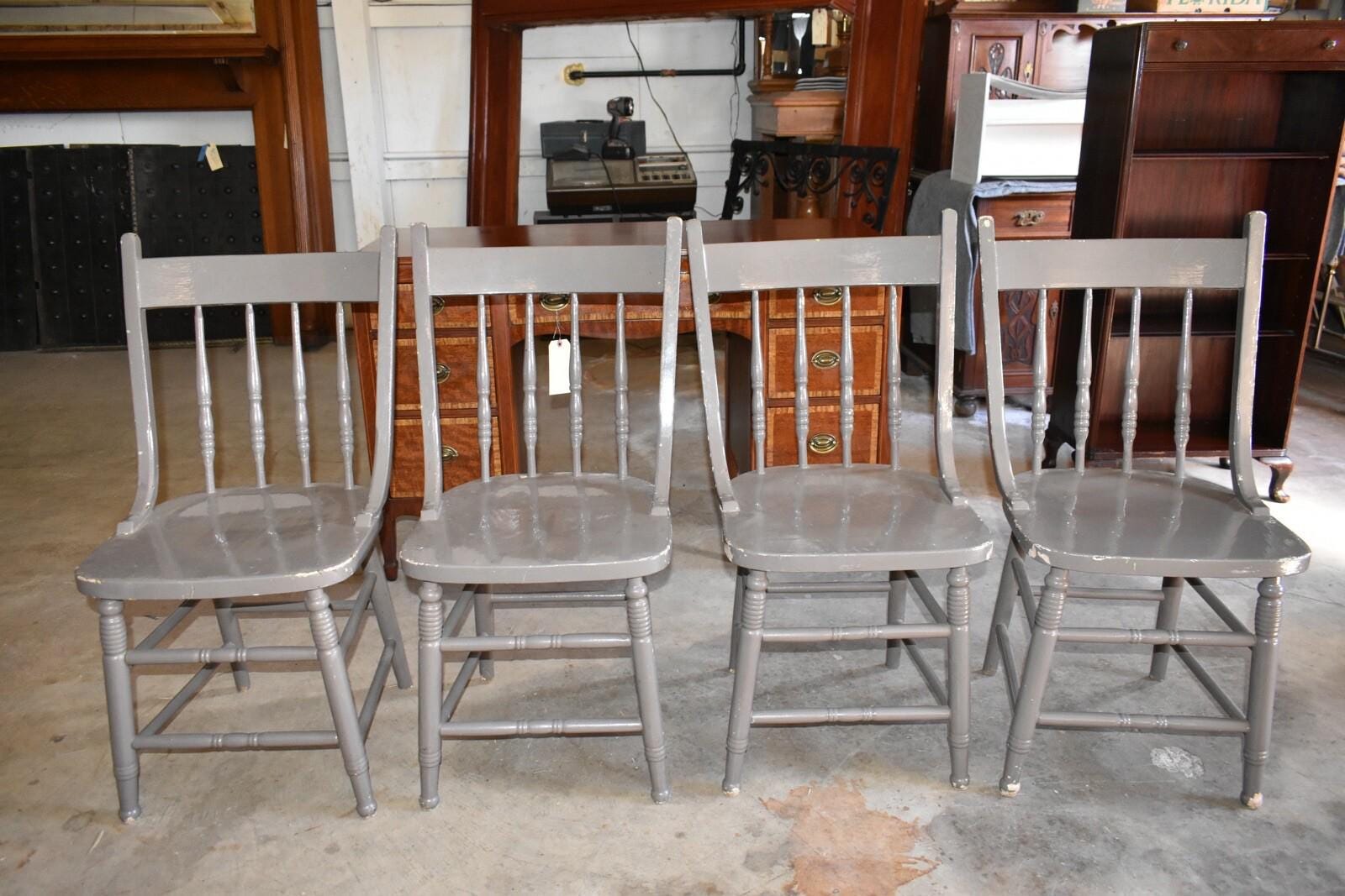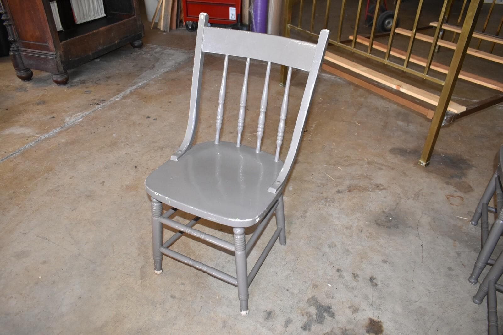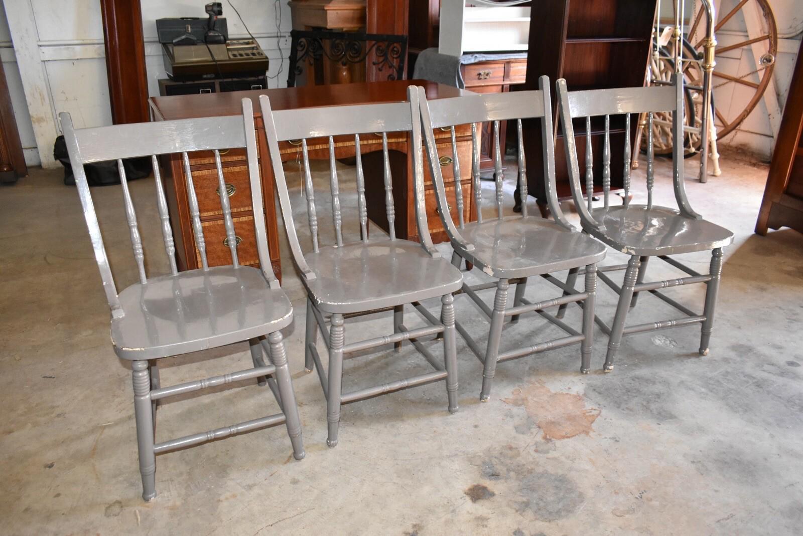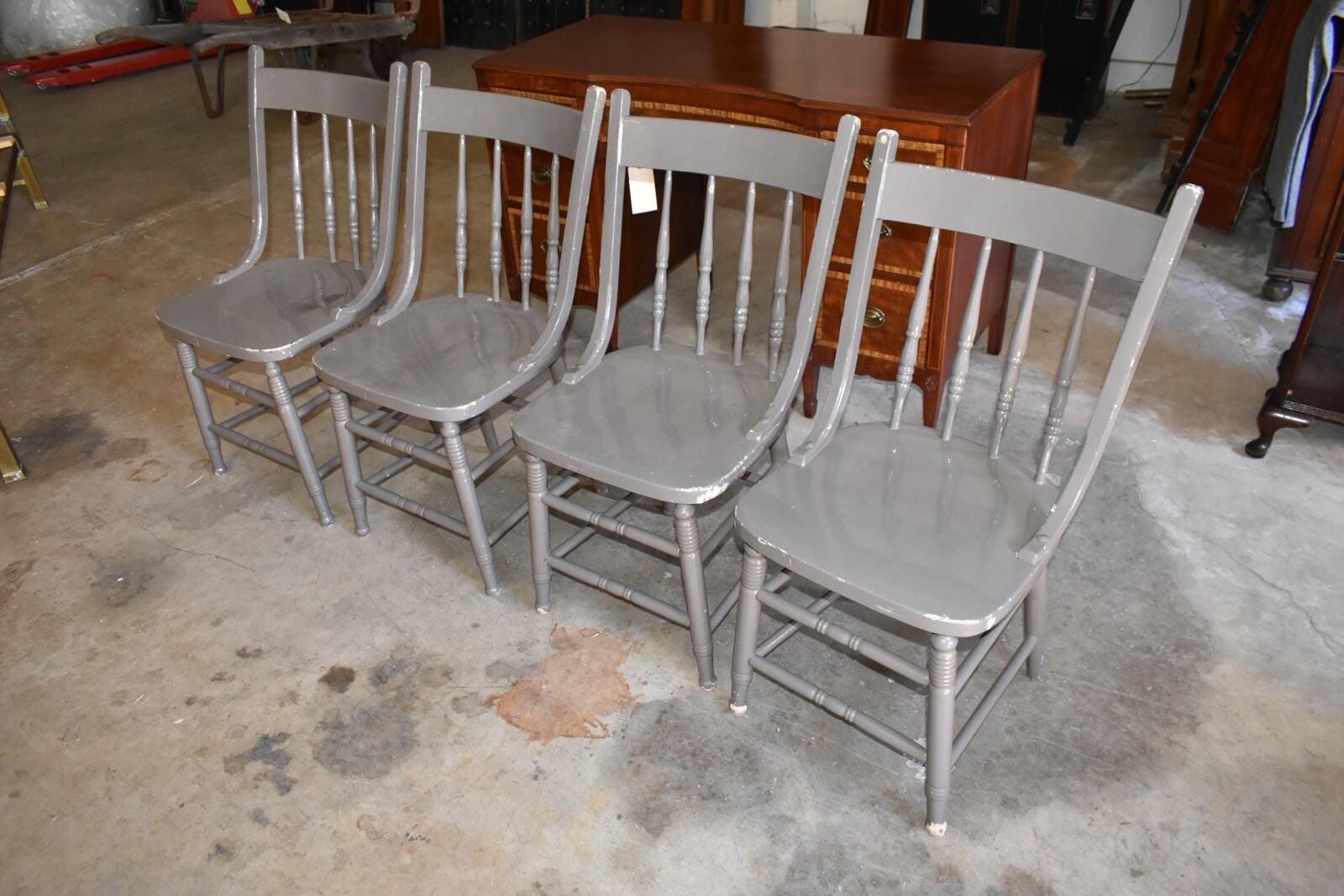 Beautiful set of 4 slate gray chairs. Sturdy and solid backed side chairs, featuring a gorgeous glossy finish.