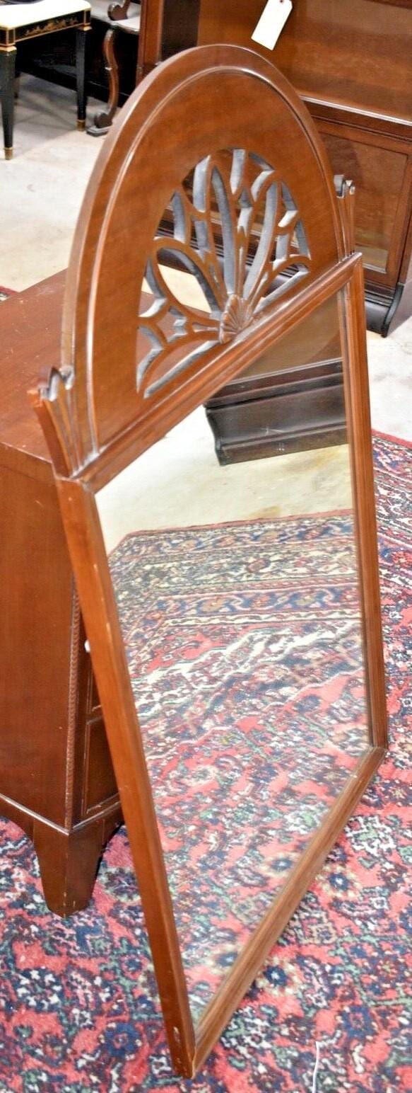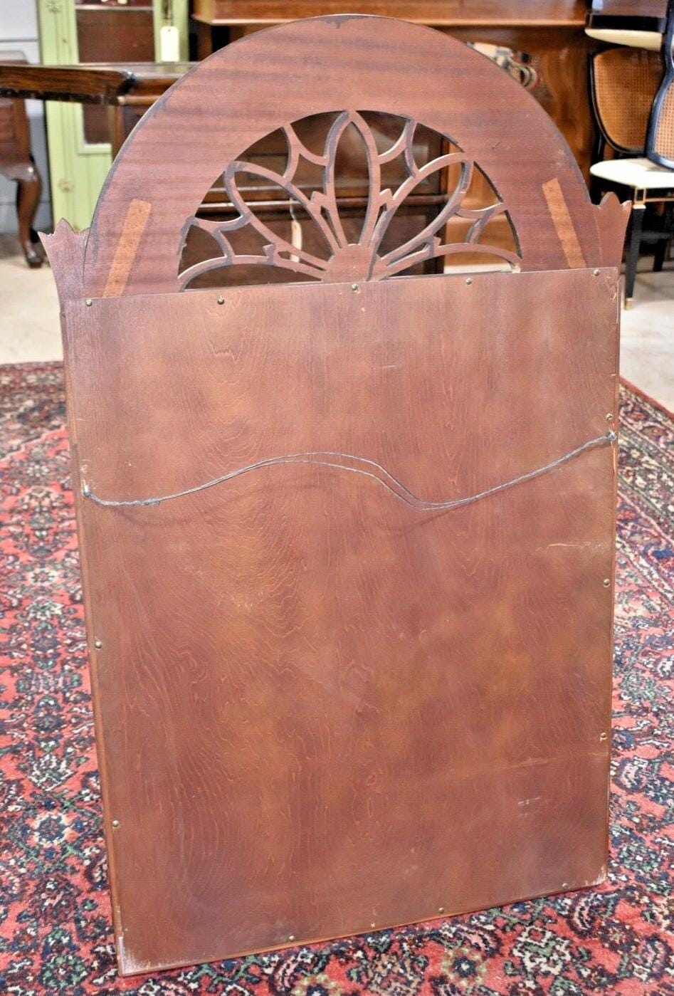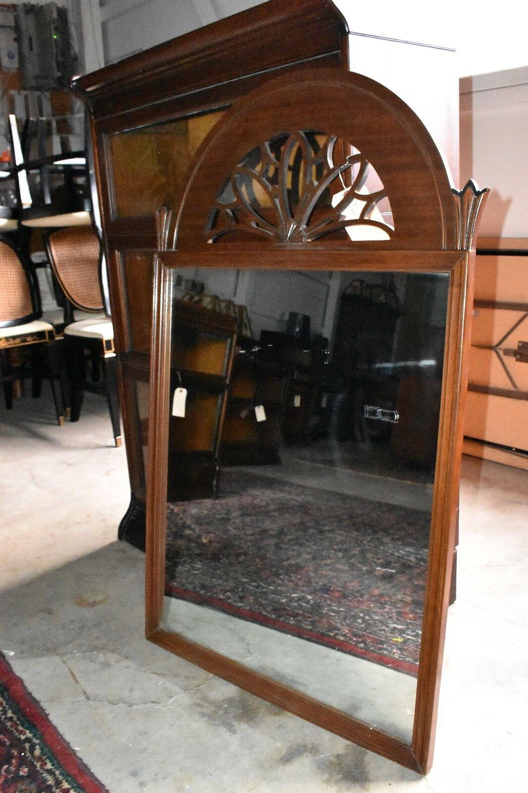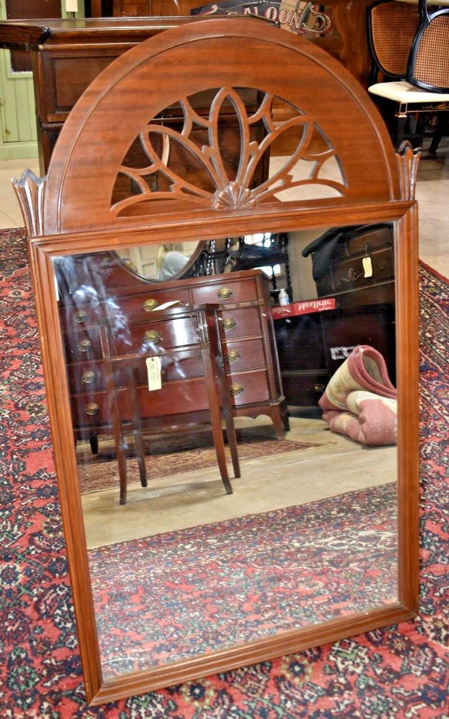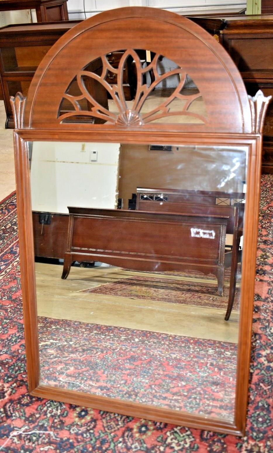 Vintage Large Round Top Carved Mahogany Wall Mirror
