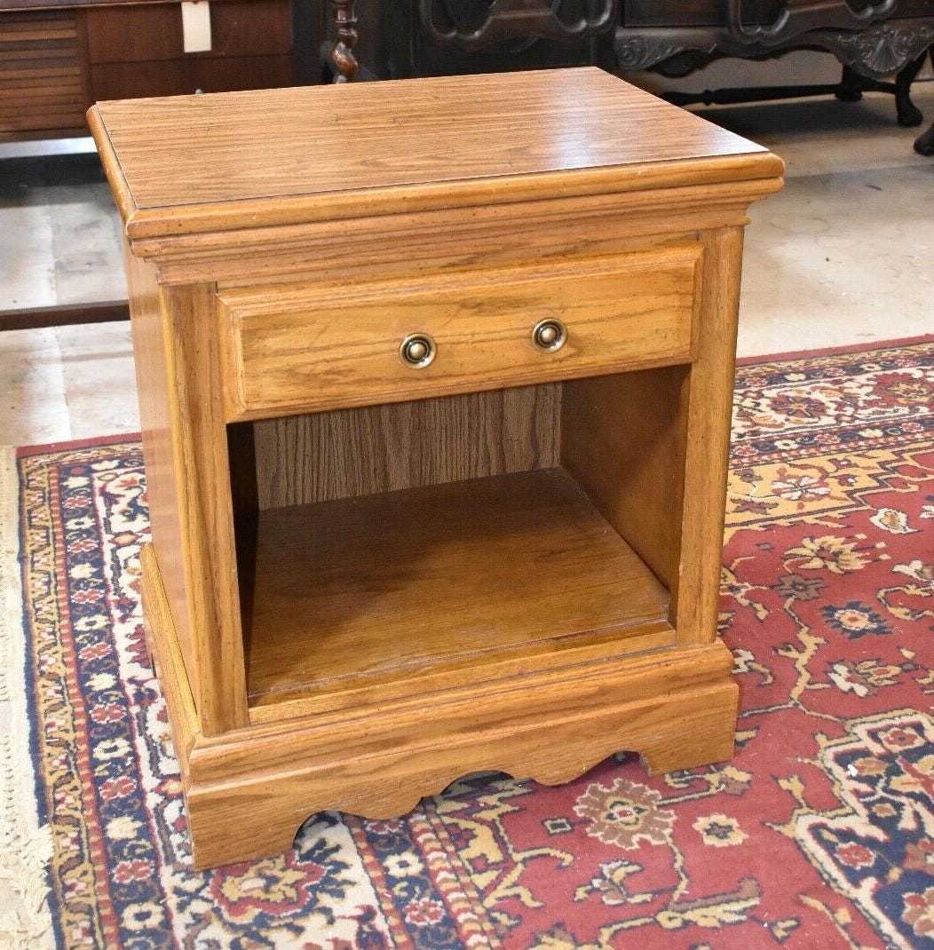 Vintage Oak Bedroom Nightstand or End Side Table, American Drew Furniture