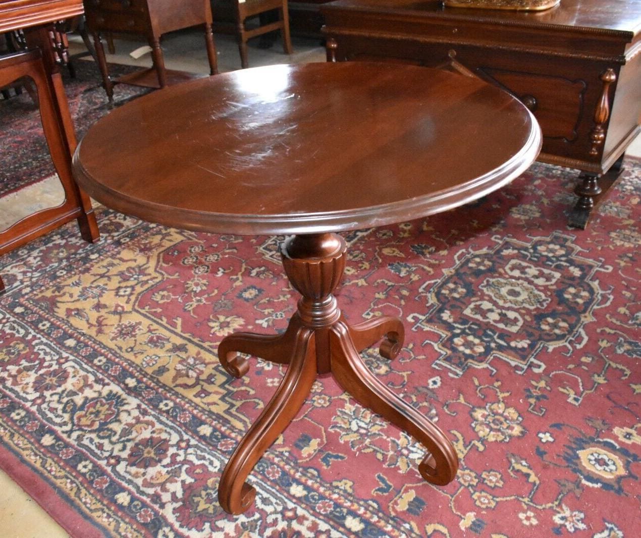 Vintage Round Accent Table with nice beveled edge on 4 legs.