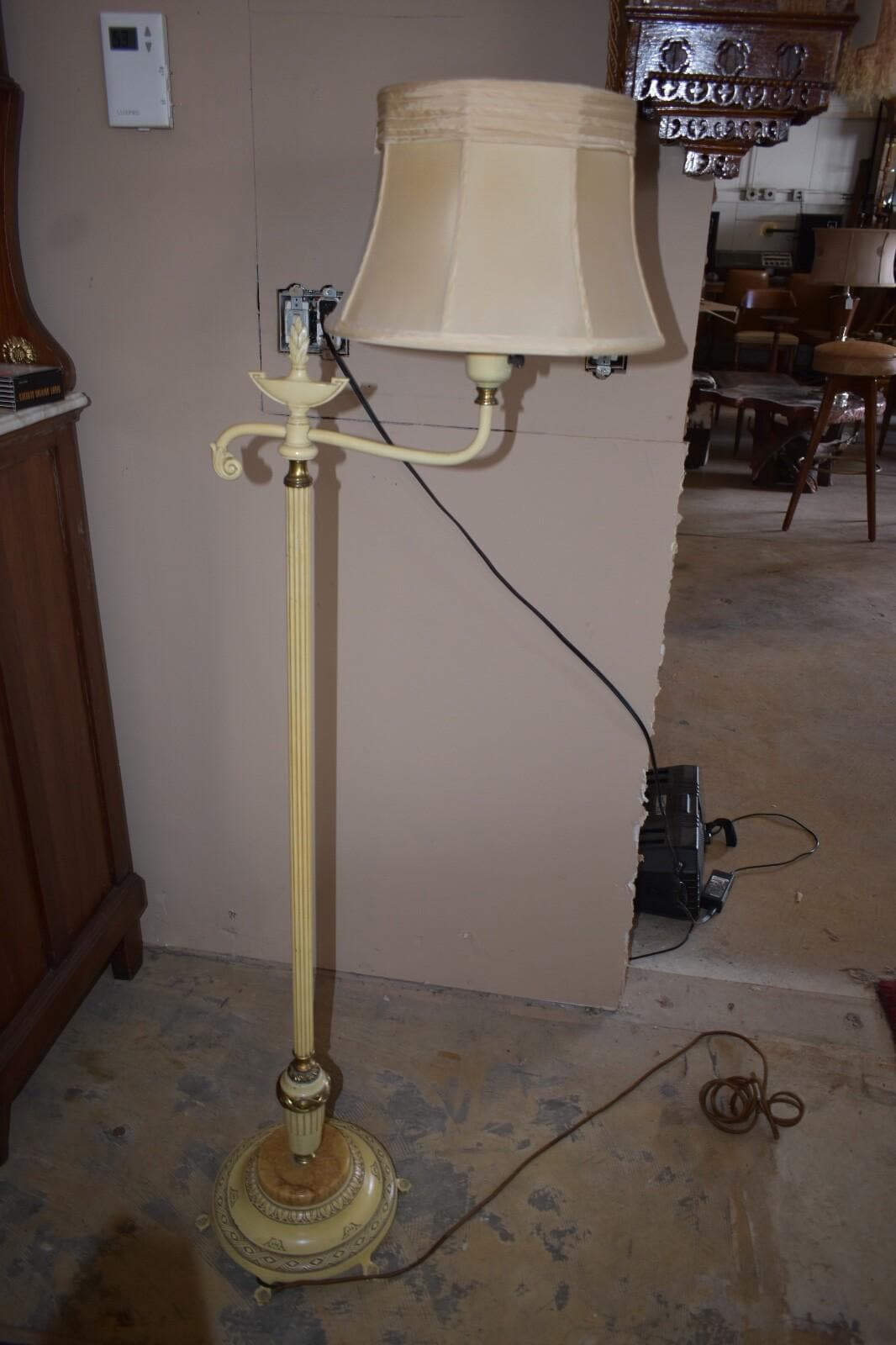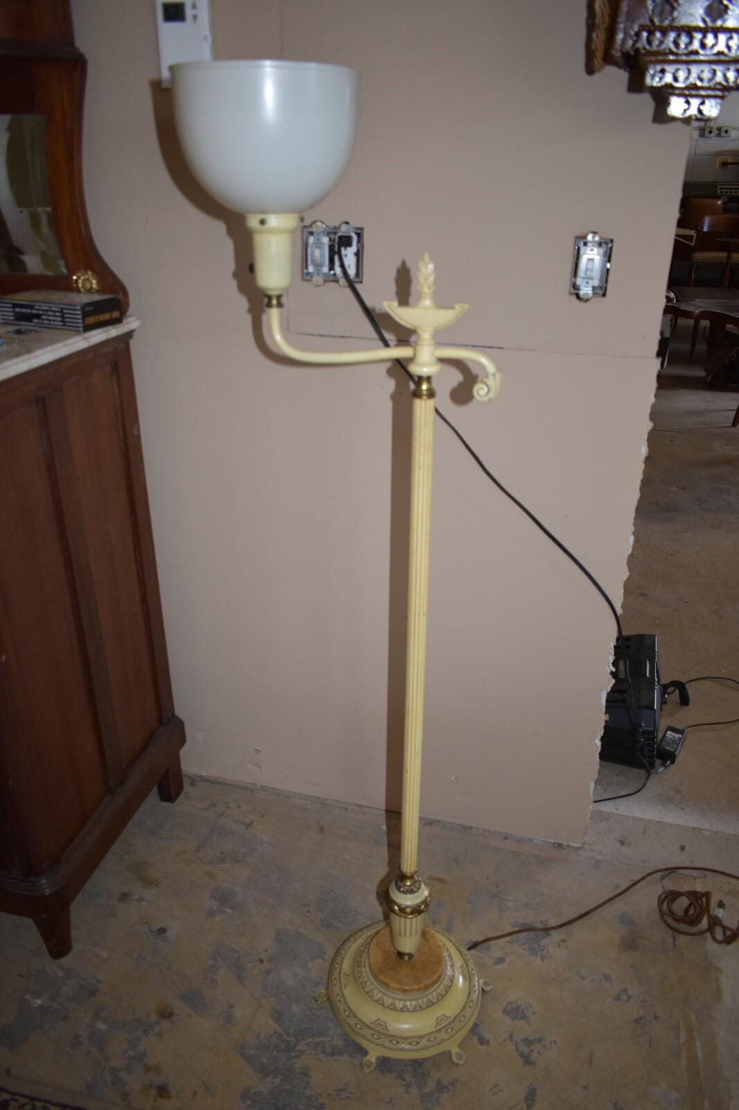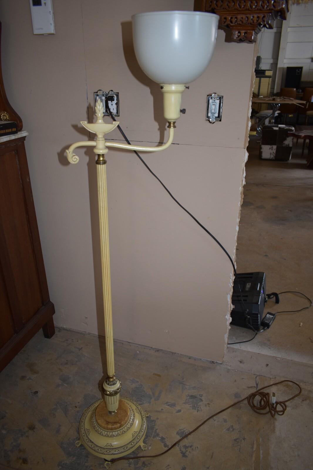 Vintage Swing Arm Ivory Floor lamp with fluted column and decorated base. Gold Accents.