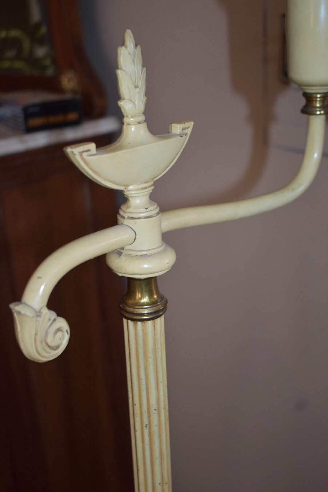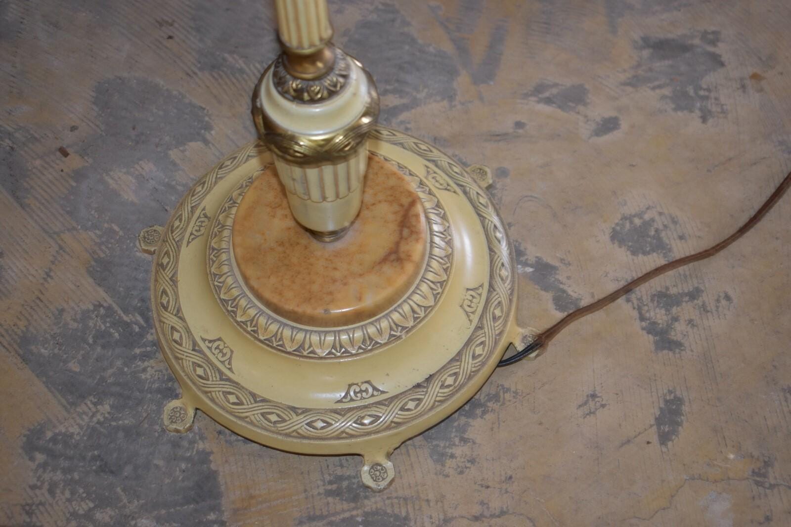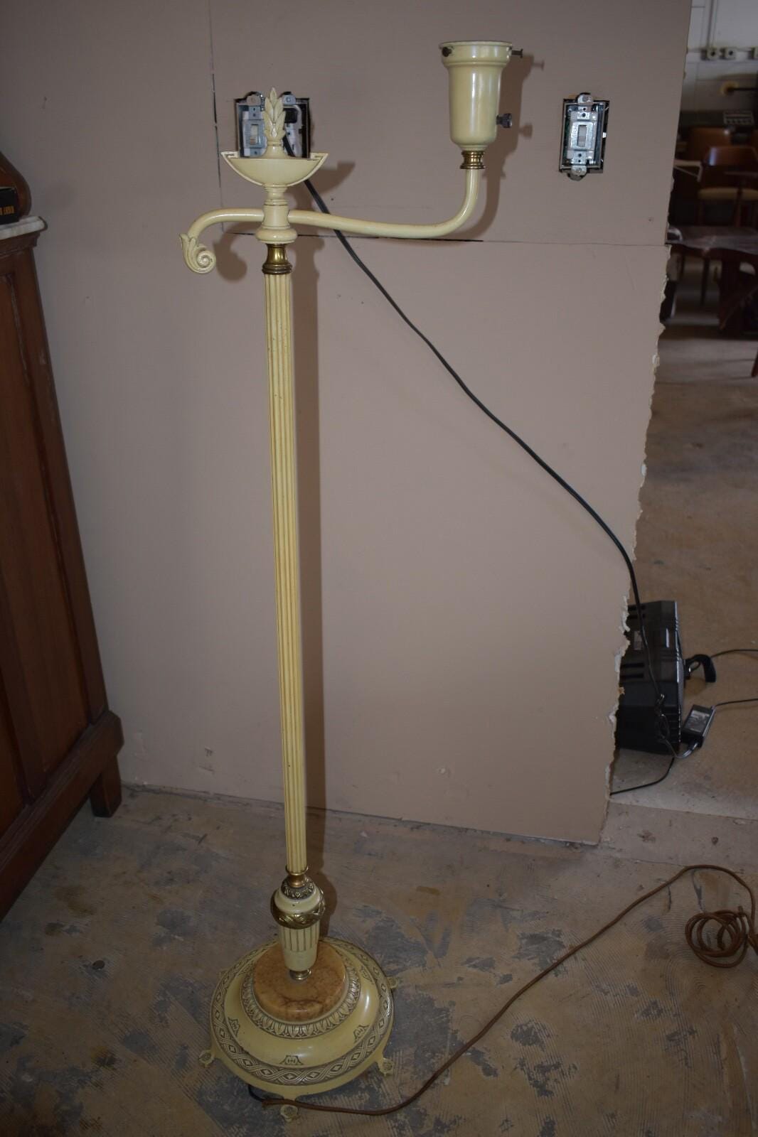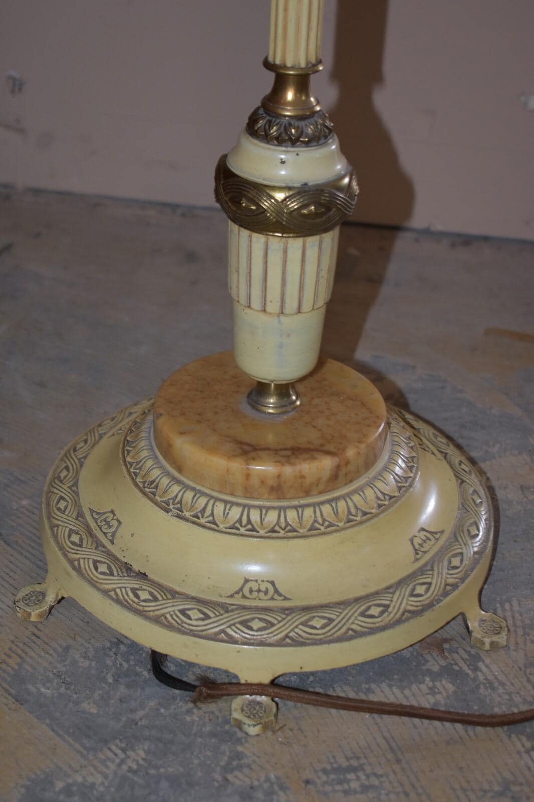 Vintage Swing Arm Ivory Floor lamp with fluted column and decorated base. Gold Accents.