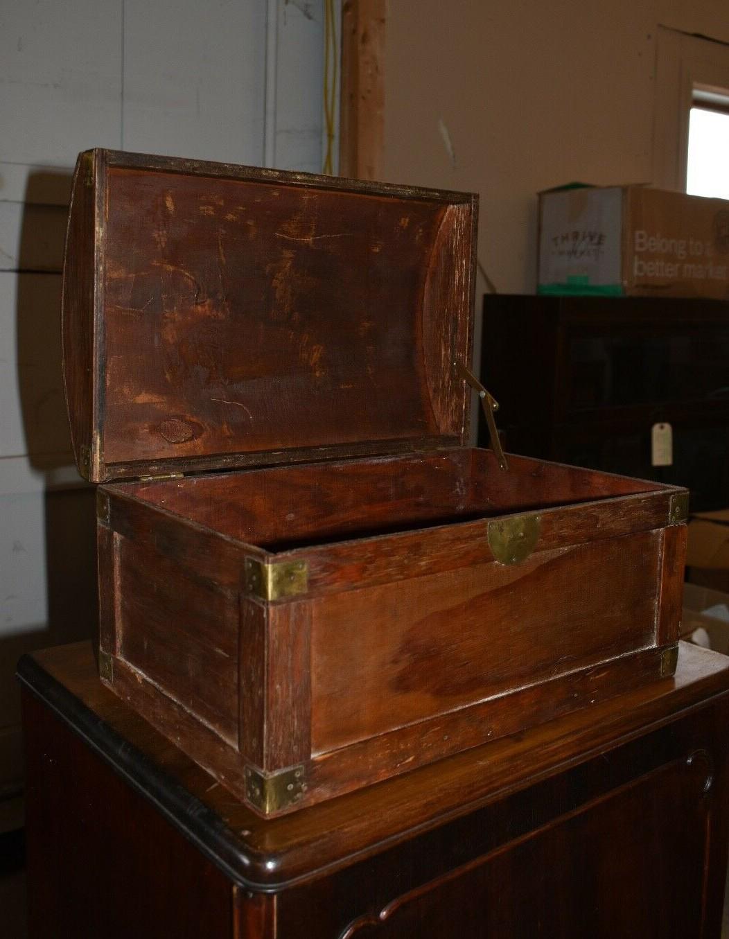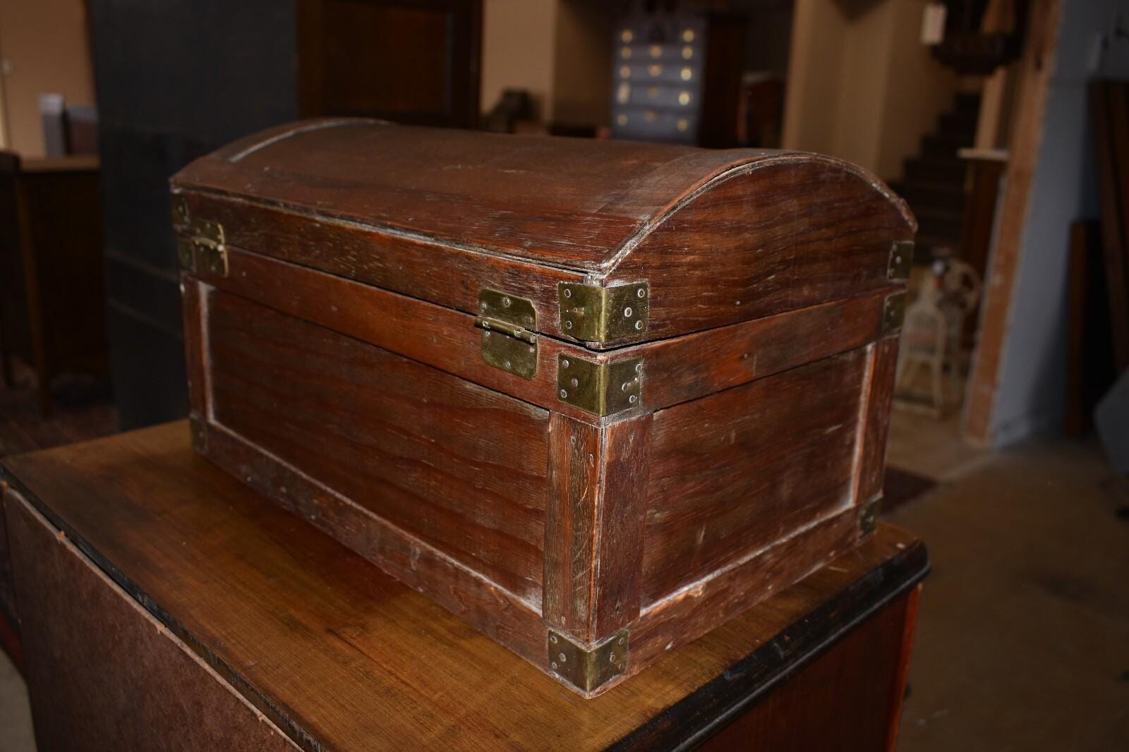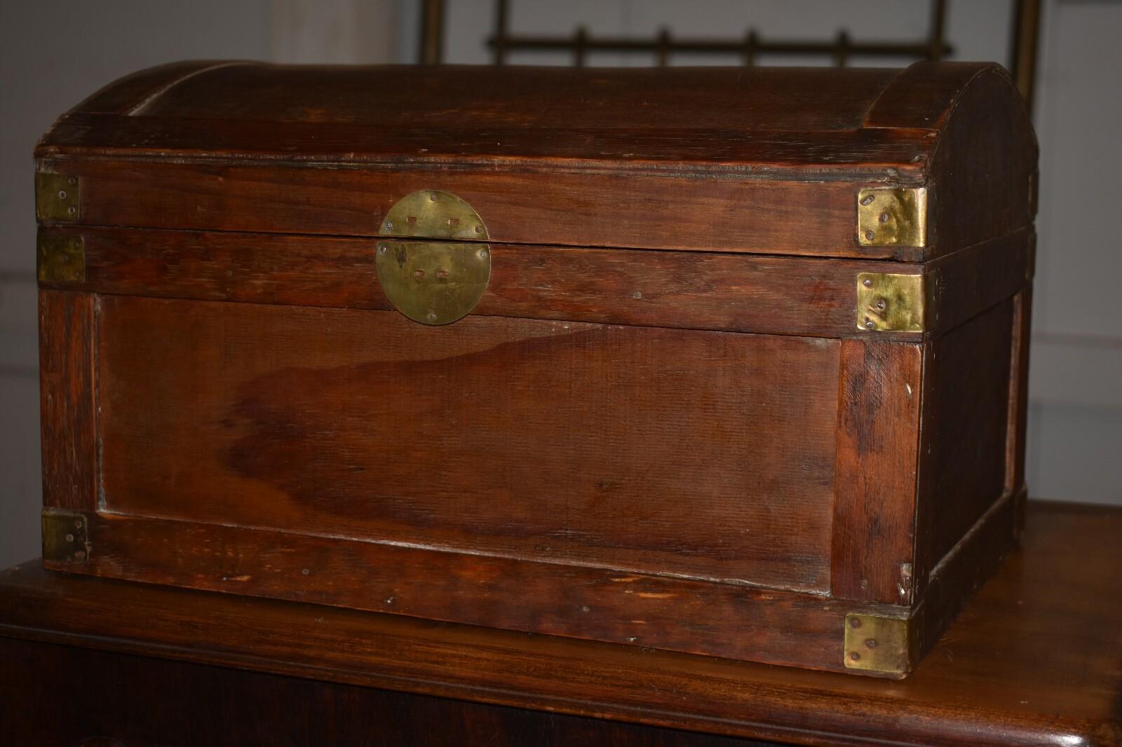 Vintage Wood Dome Top, Table Top Chest/Box with Brass Corners