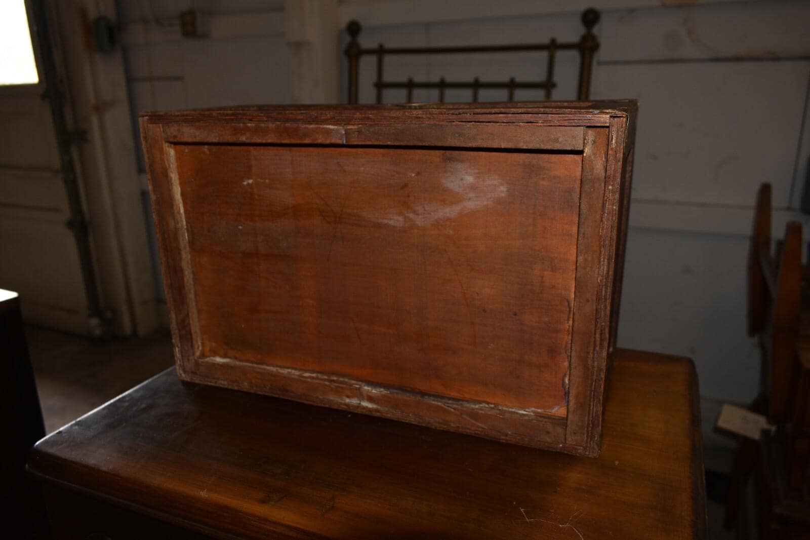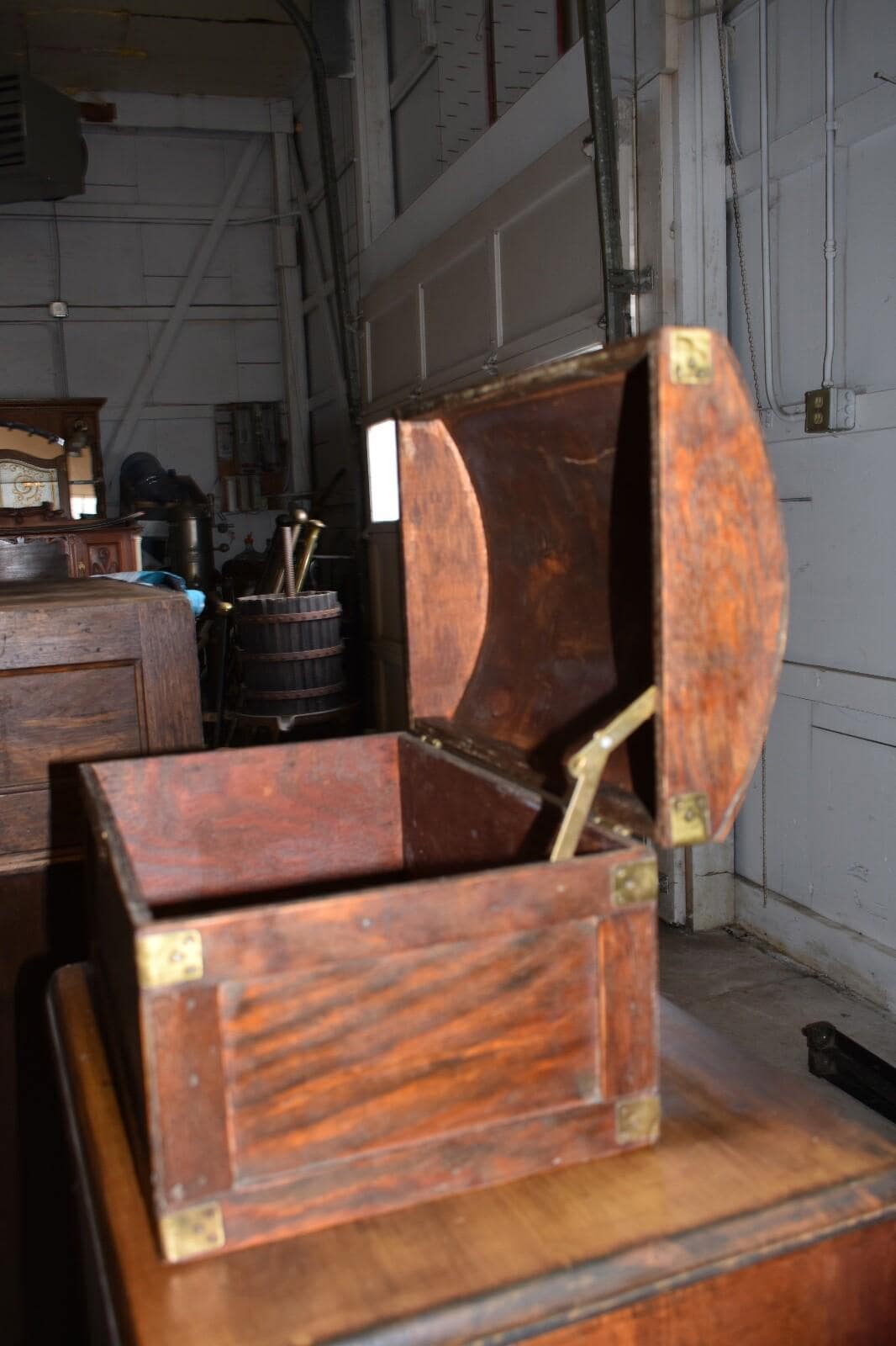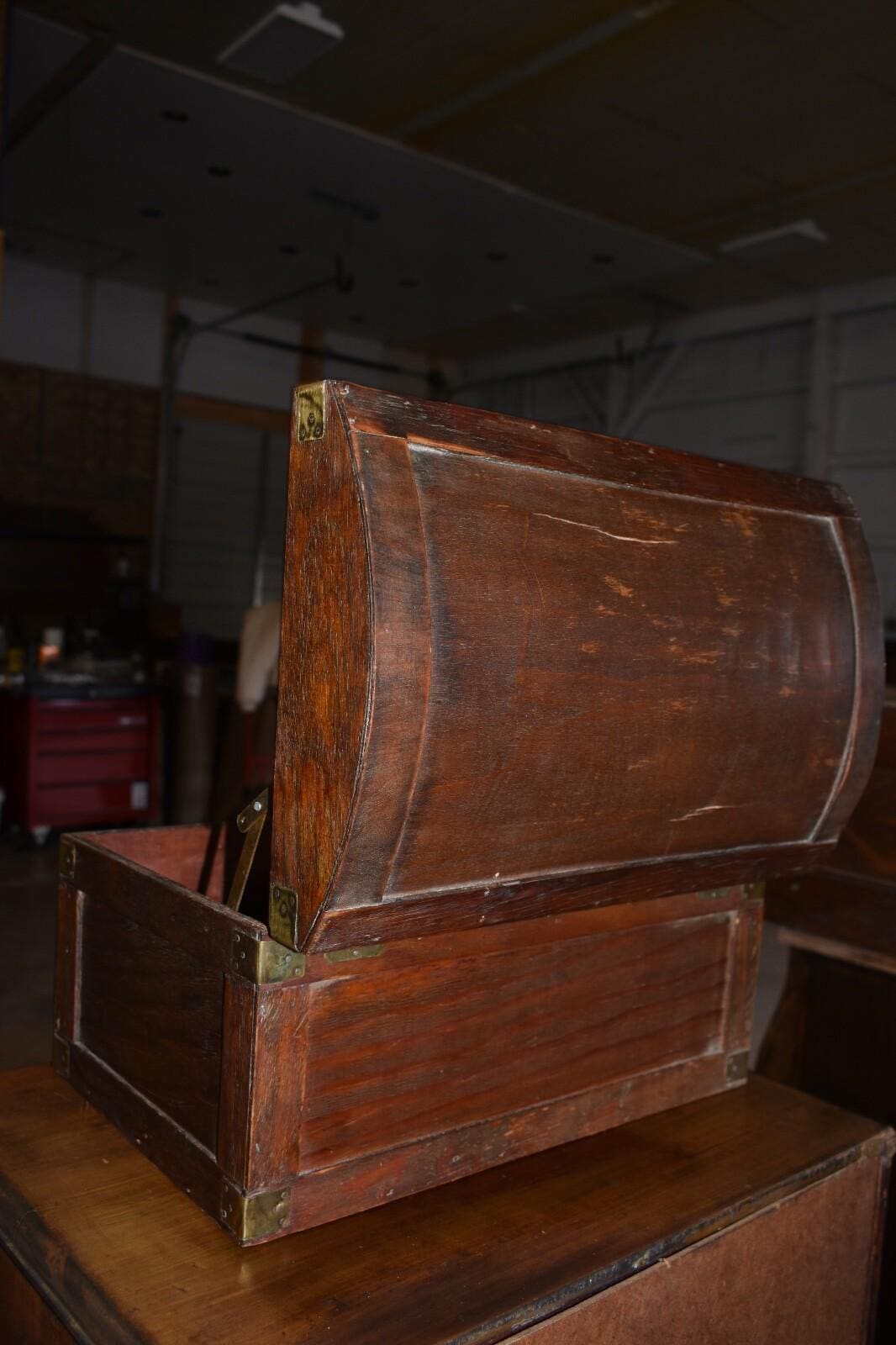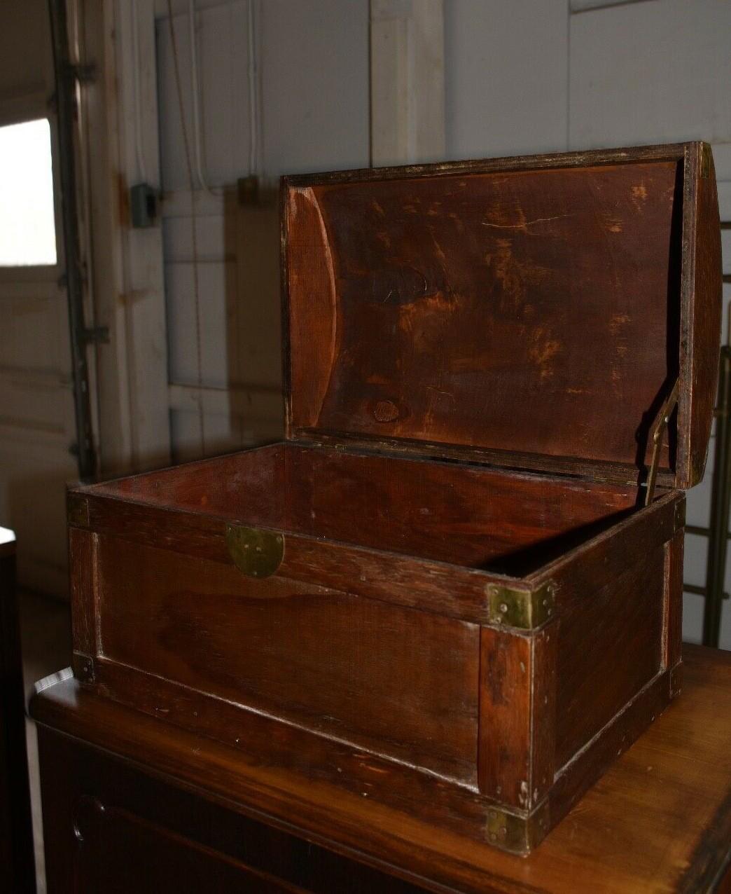 Vintage Wood Dome Top, Table Top Chest/Box with Brass Corners