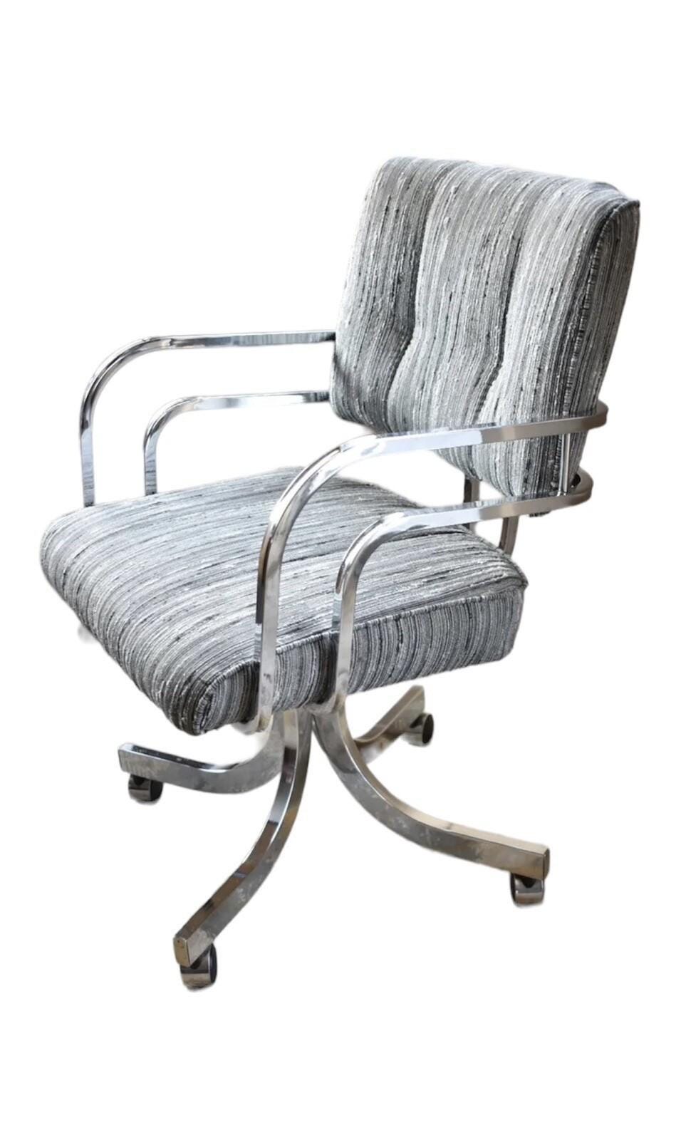 Mid Century Style Upholstered Chrome Swivel Arm Chair, Cal-Style Furniture CA